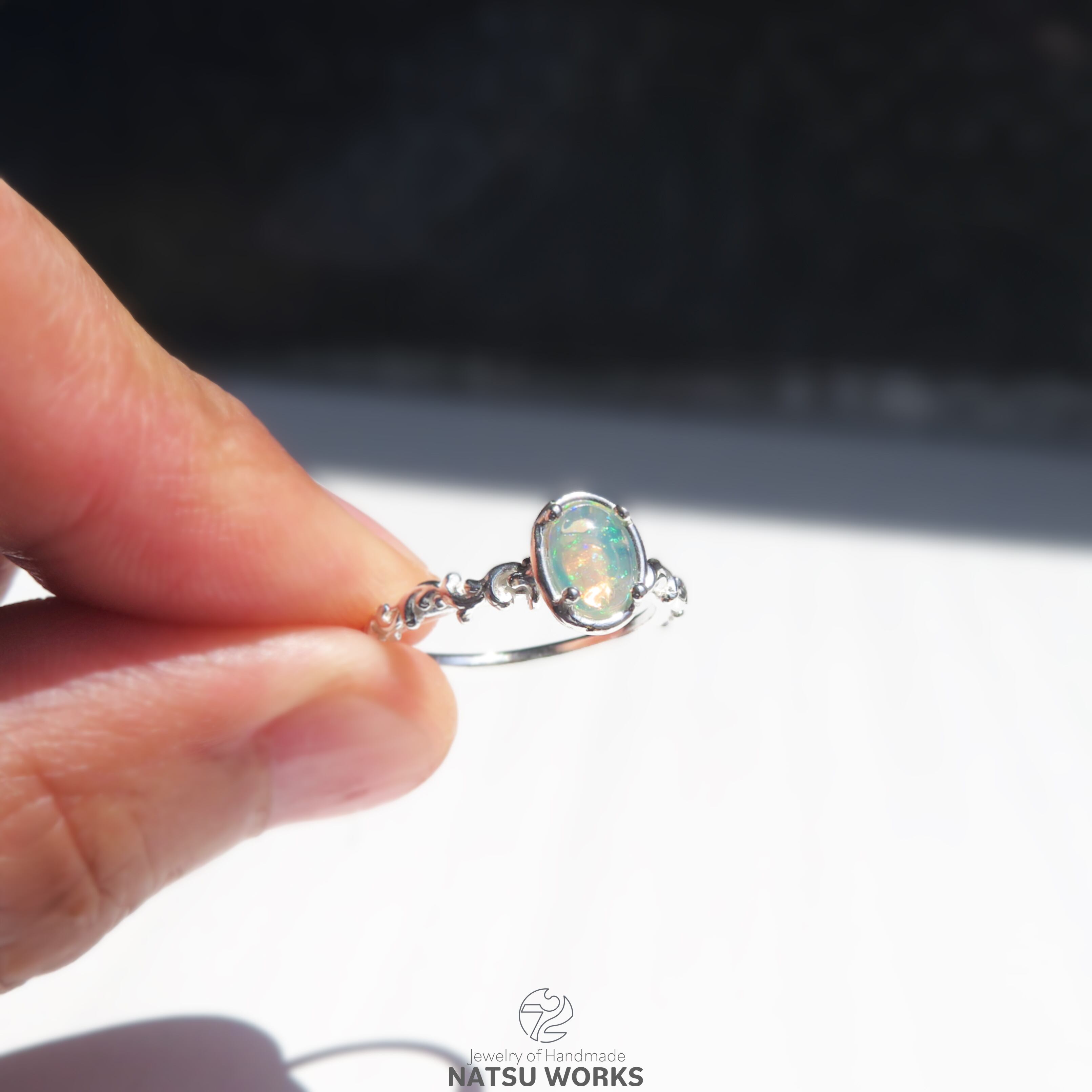 鮮やかな色彩をもったオパールを、唐草の細身のアームにセットしました。