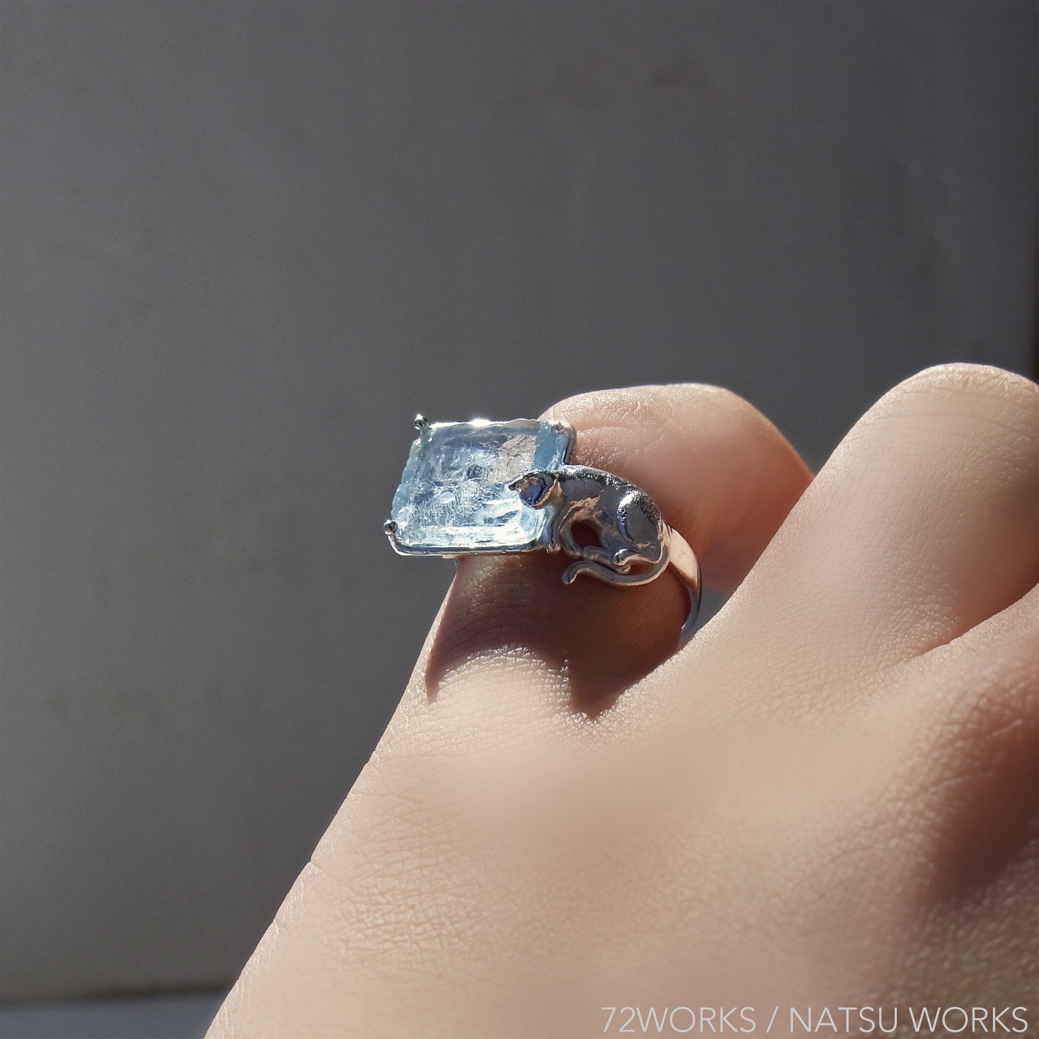 アクアマリンと猫 * Aquamarine & Cat Ring
