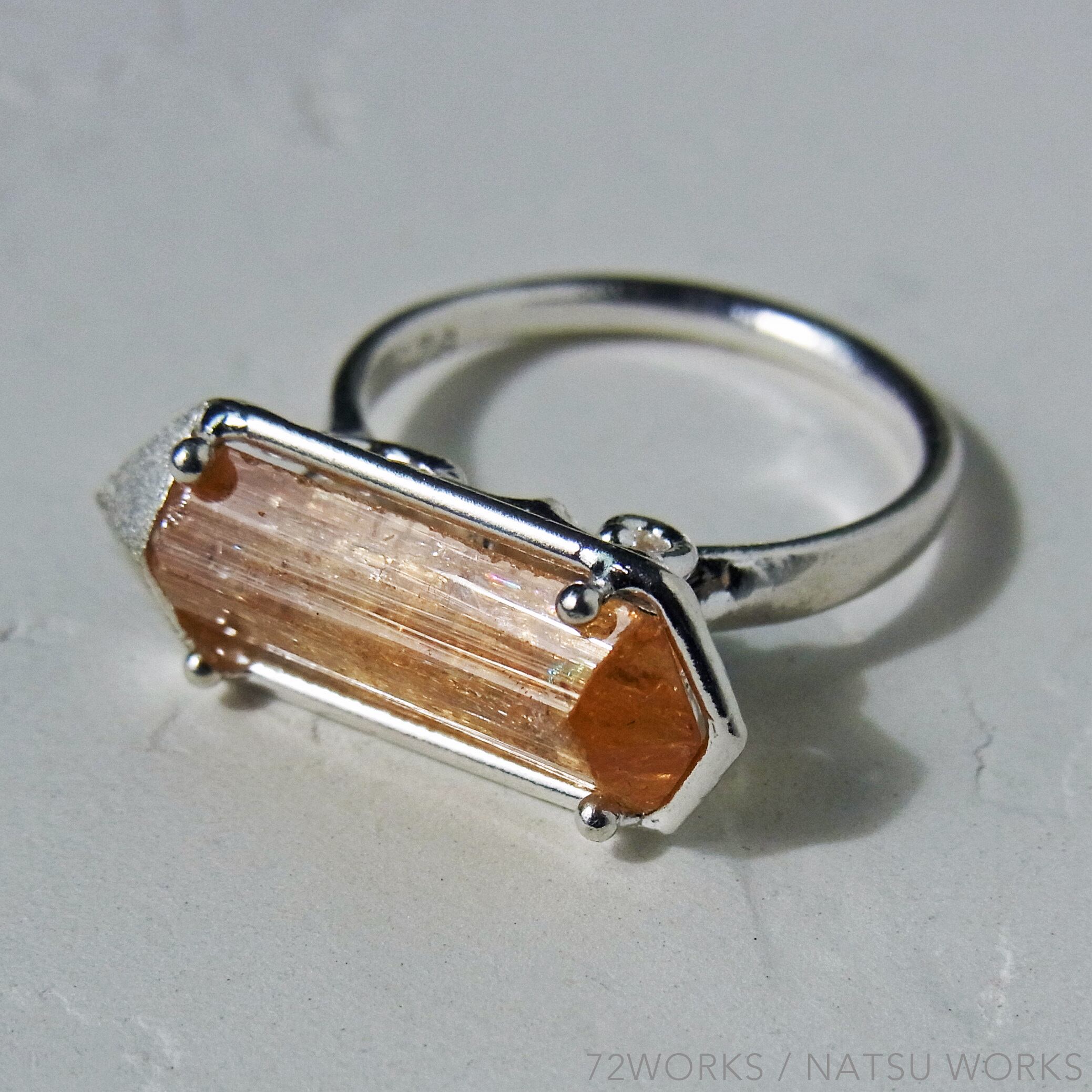鮮やかな発色と表面の照りを持つ、ブラジル産インペリアル・トパーズを使用したリング。