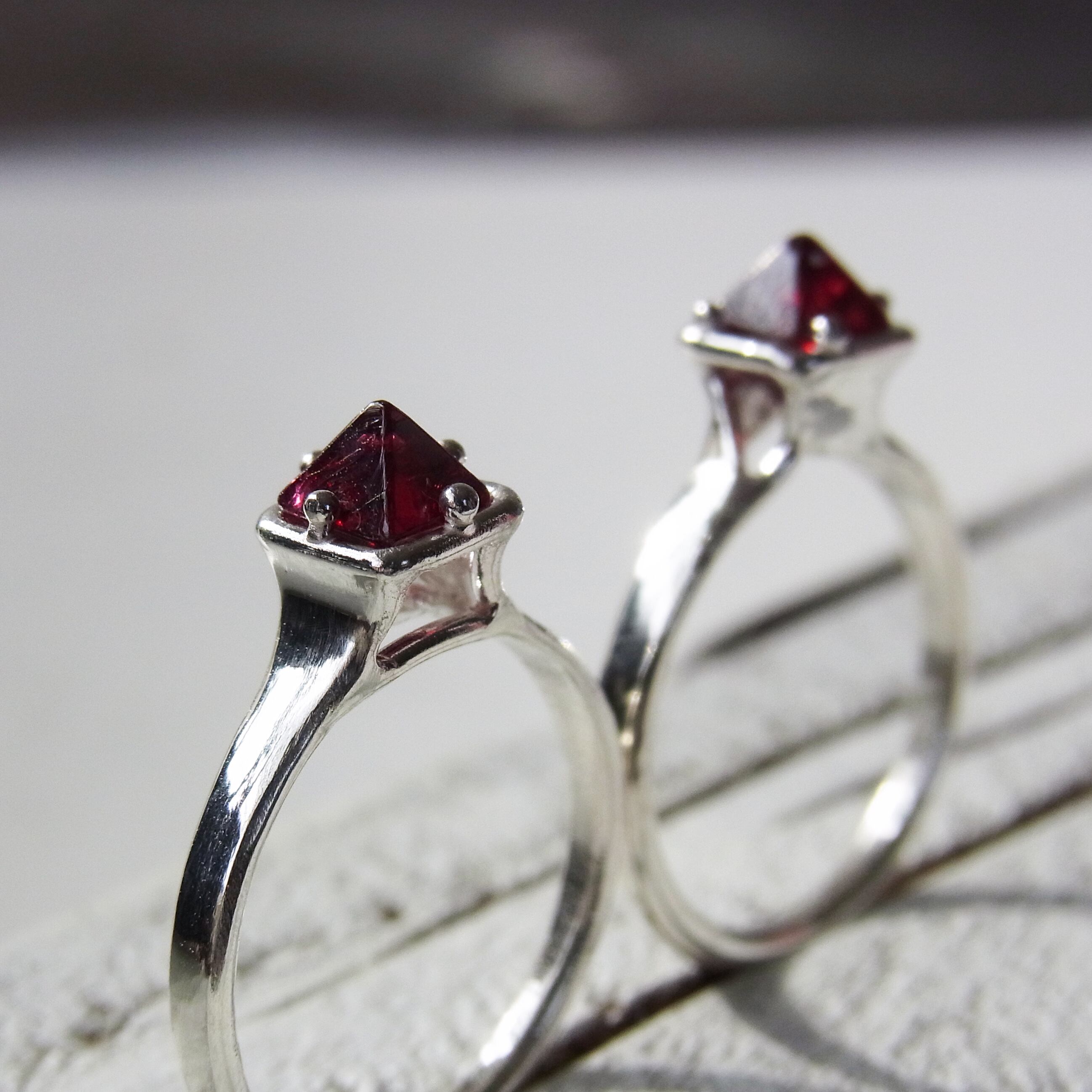 深い赤が目を引く、ビルマ産スピネルを使用したリング。