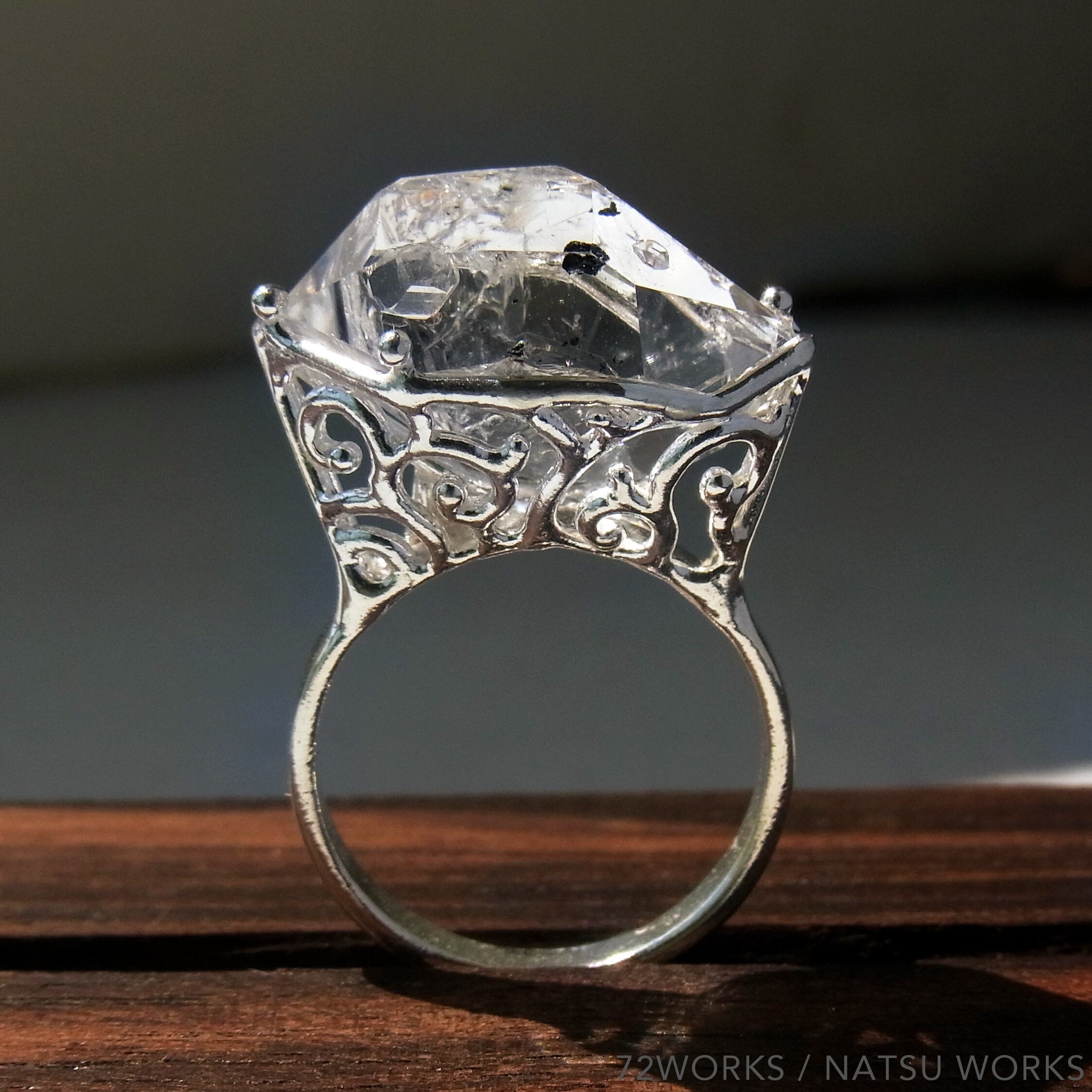アメリカにて仕入れた大粒のハーキマー・ダイヤモンドを使用したリング。