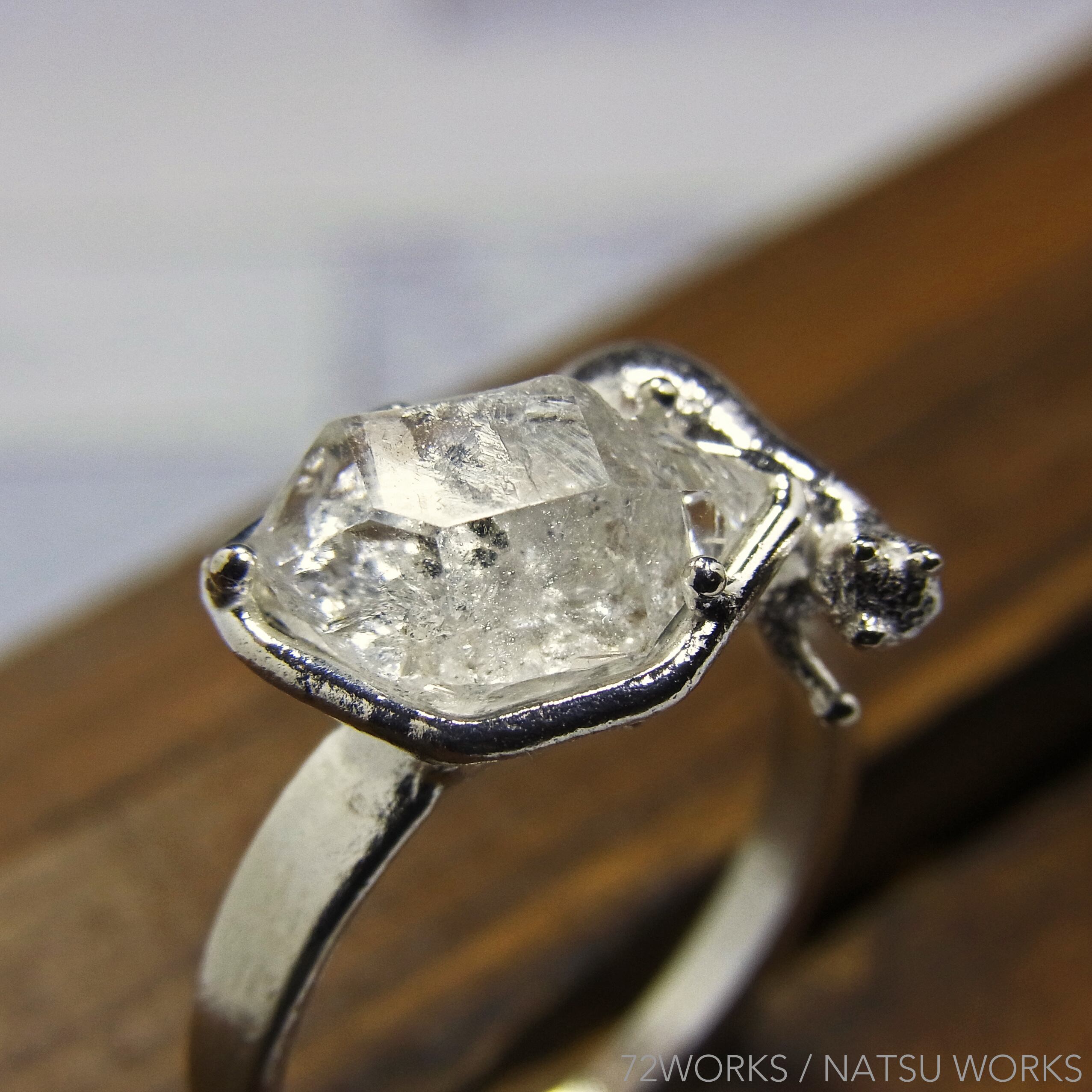 アメリカ・ニューヨーク州産、ハーキマー ダイヤモンドと、それを留めている?ネコのリング。