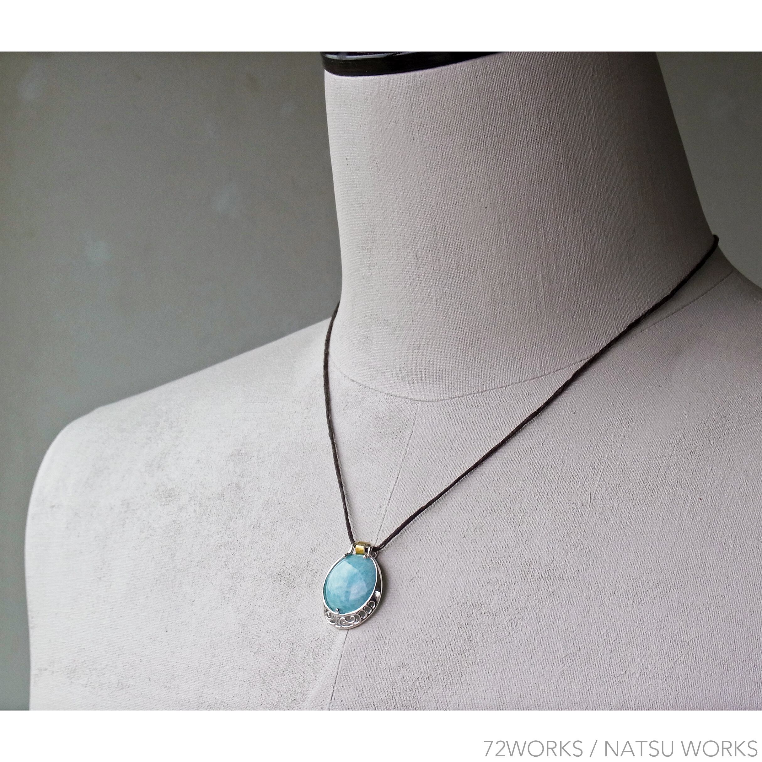 さわやかなブルーと表面のラメ状の反射が印象的な、マダガスカル産アマゾナイトのネックレス。