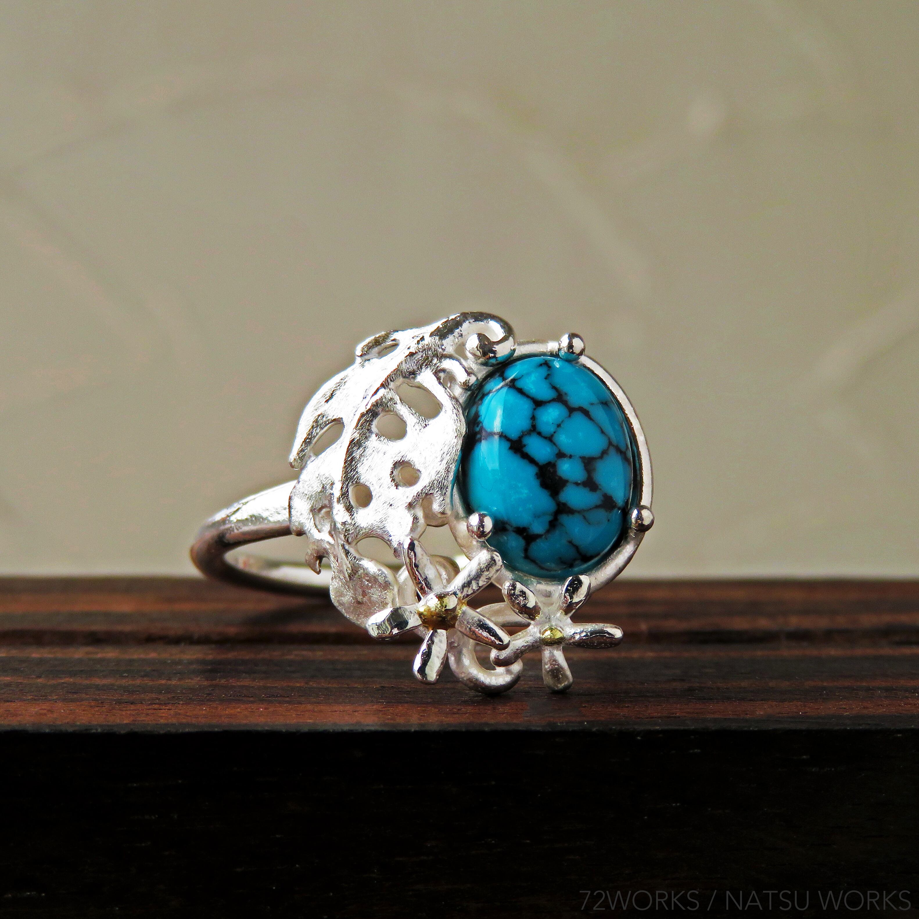 モンステラの葉と、ジャスミンをイメージしたモチーフで飾った一品です。