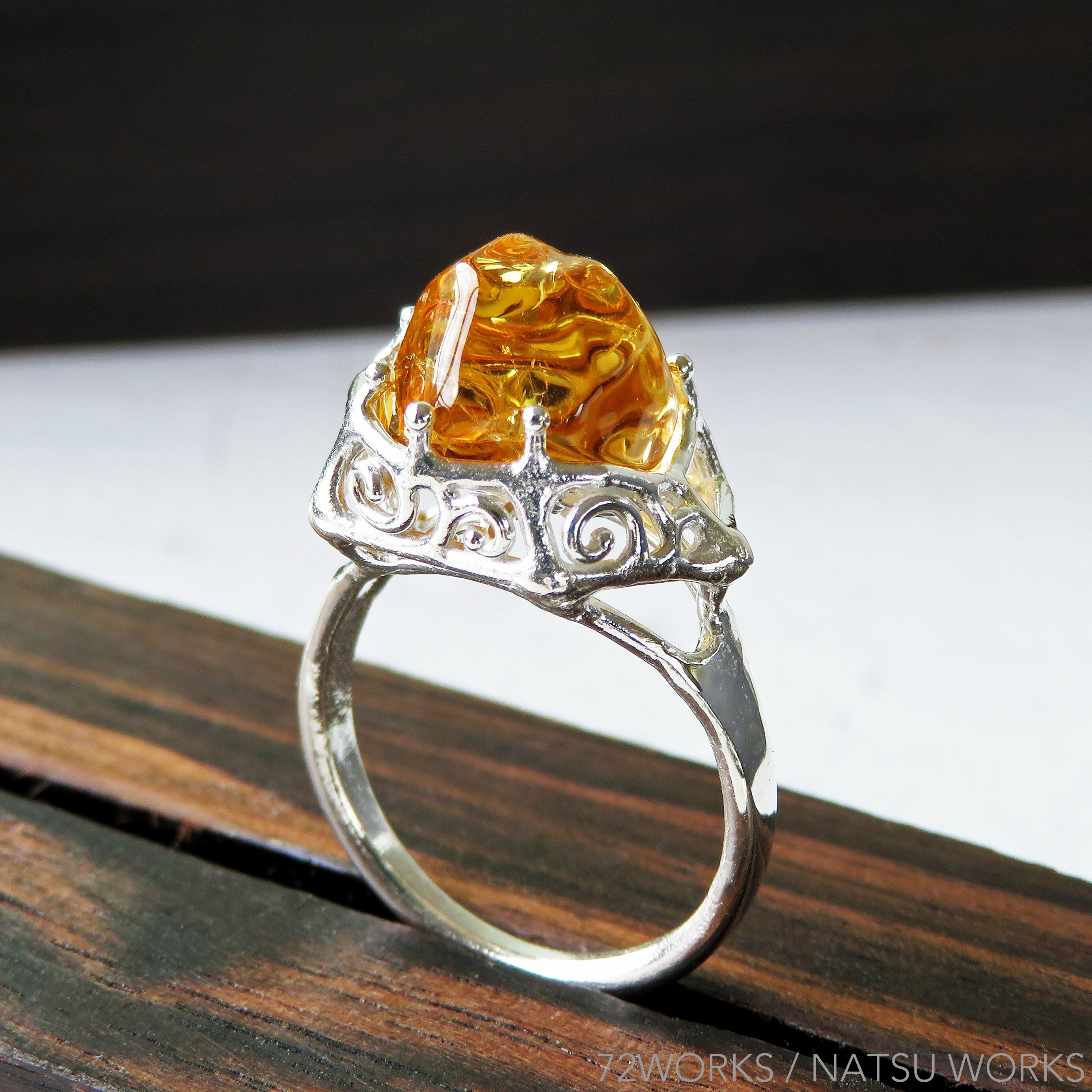 表面がツルリと磨かれた、シトリンの原石を使用したリング。