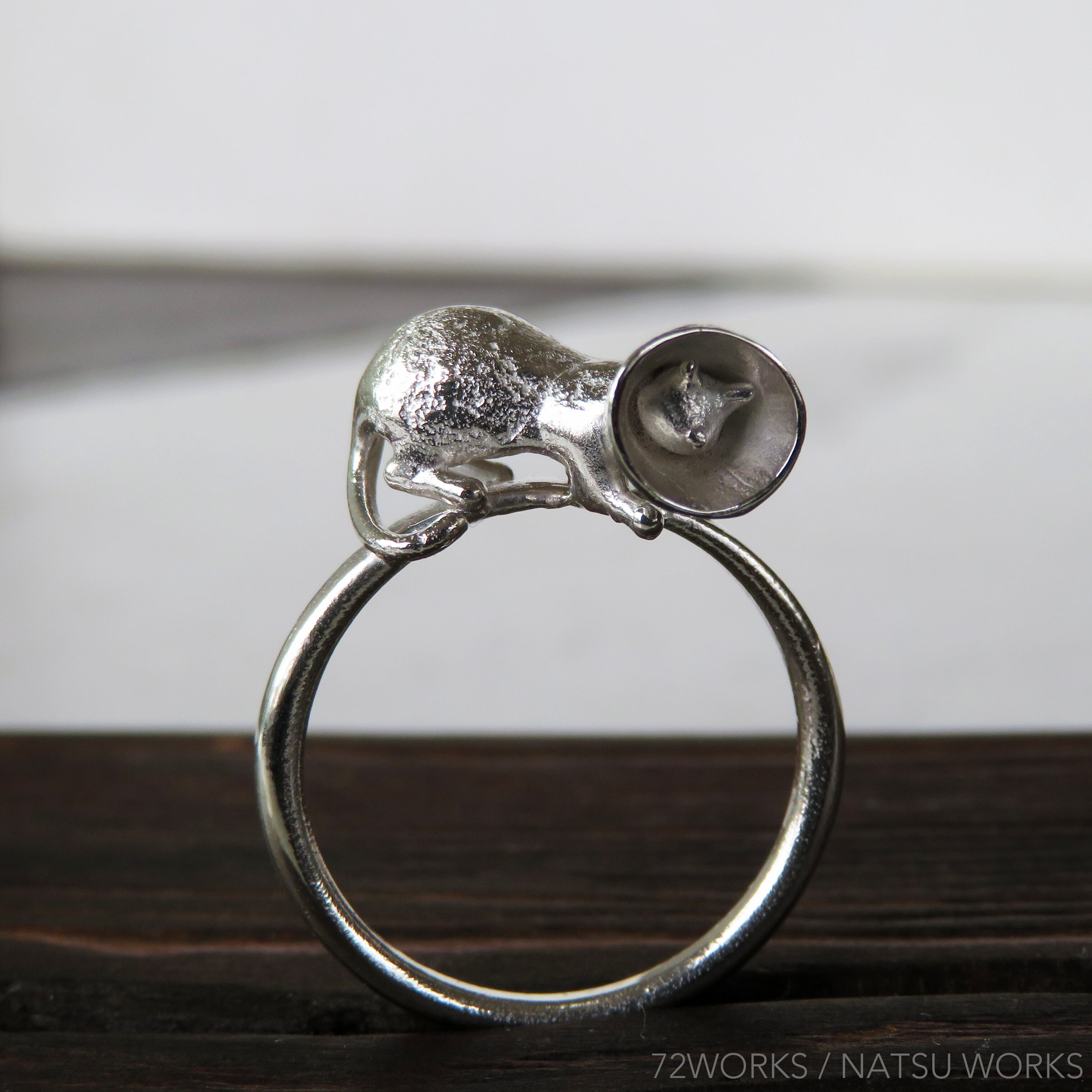 好評いただいています、エリザベスカラーをつけられた猫のリング。