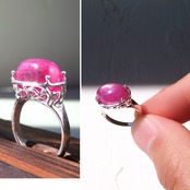 鮮やかなピンクの中に、特有の結晶が光るルビーを使用したリング。