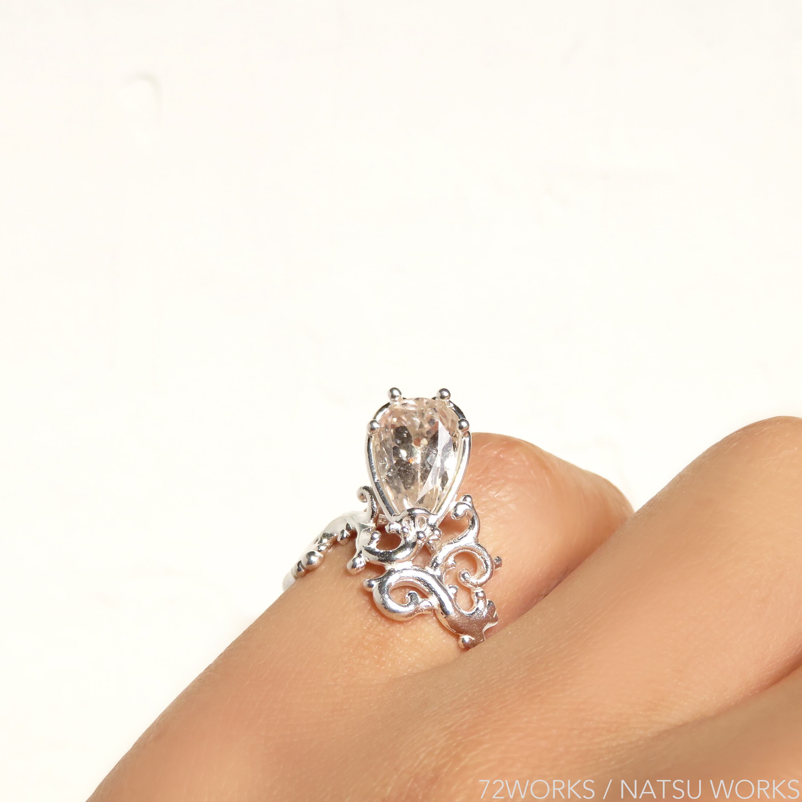 淡く色づくクンツァイトを、ボタニカルな印象のリングにセッティング。