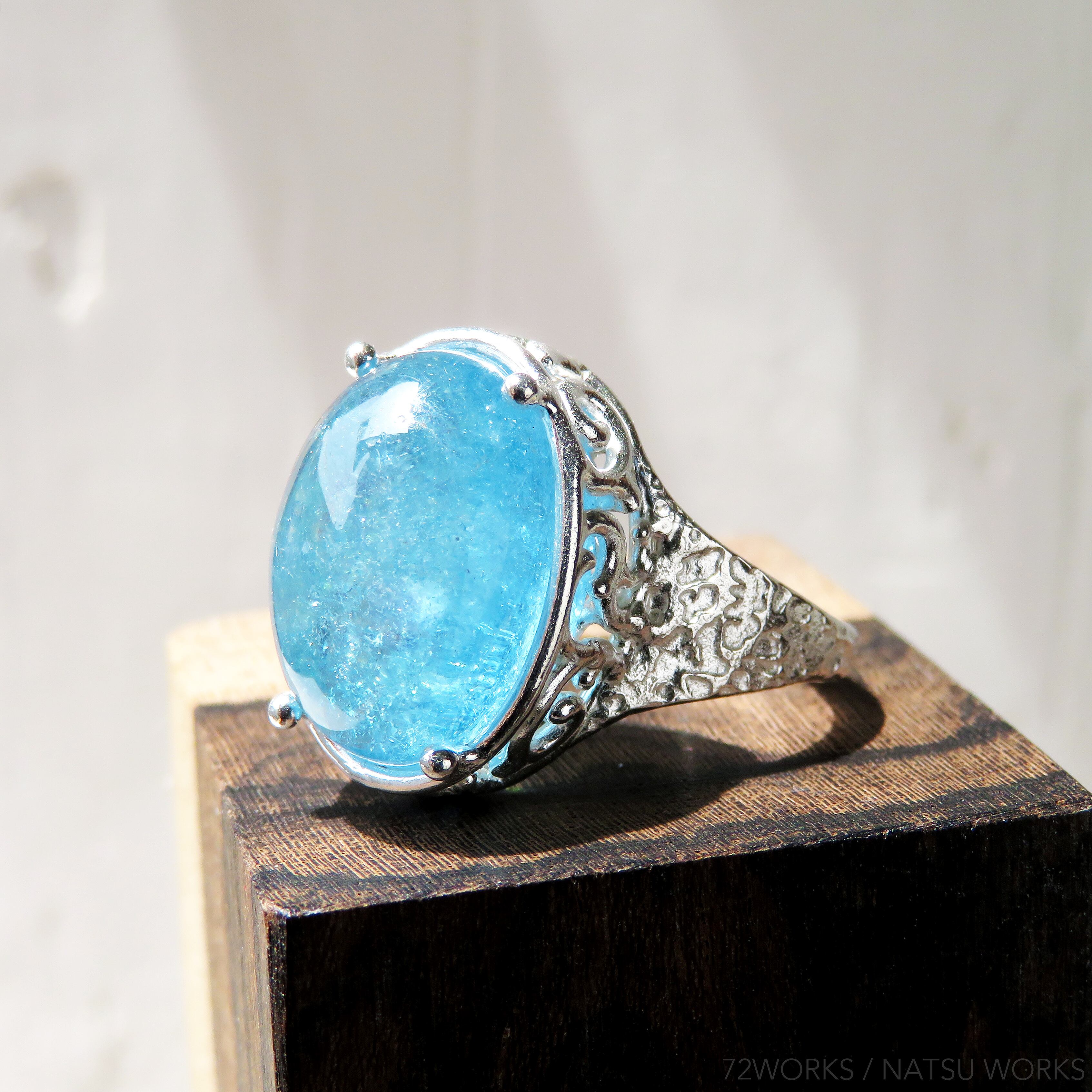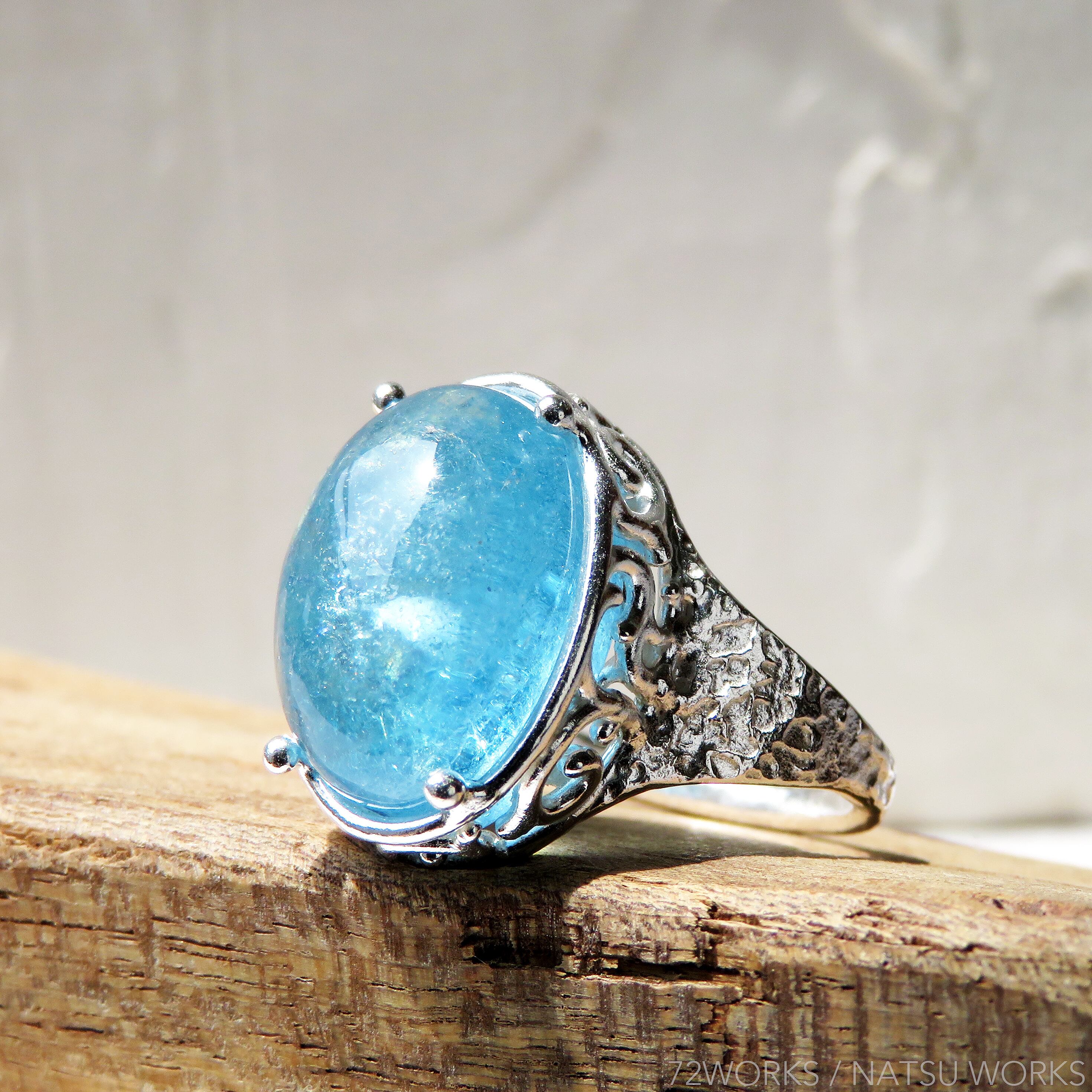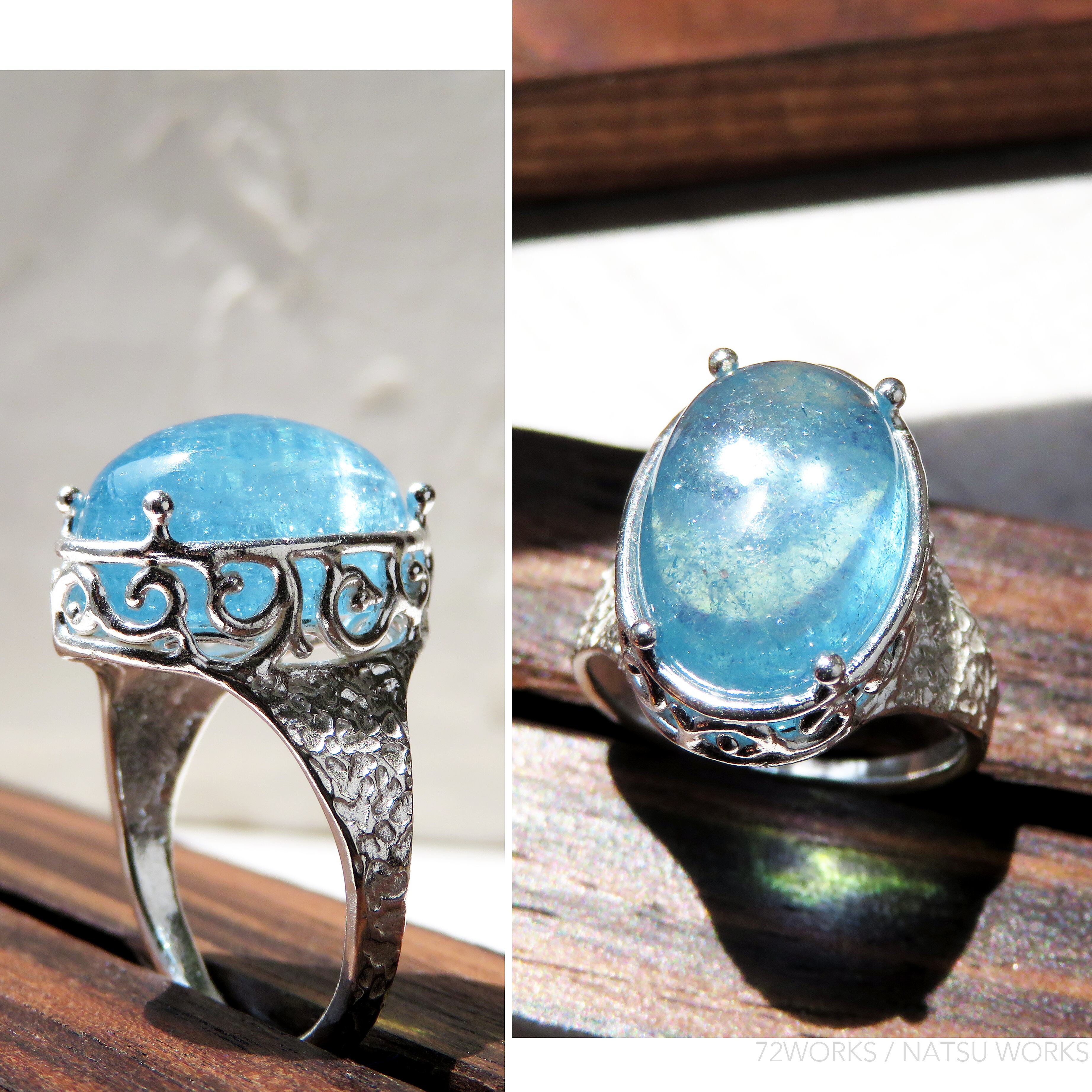 ふっくらとしたカットのアクアマリンを使用したリング。