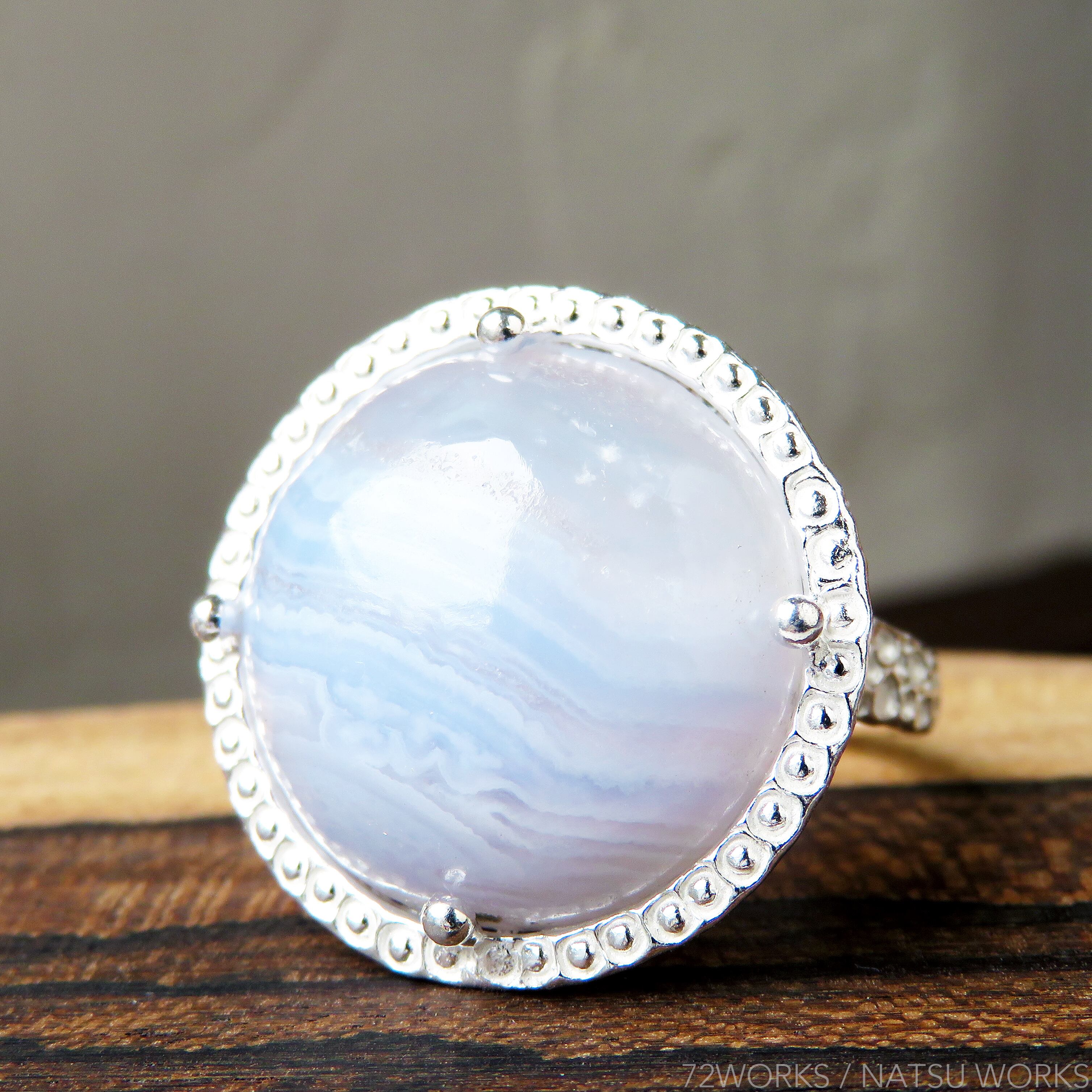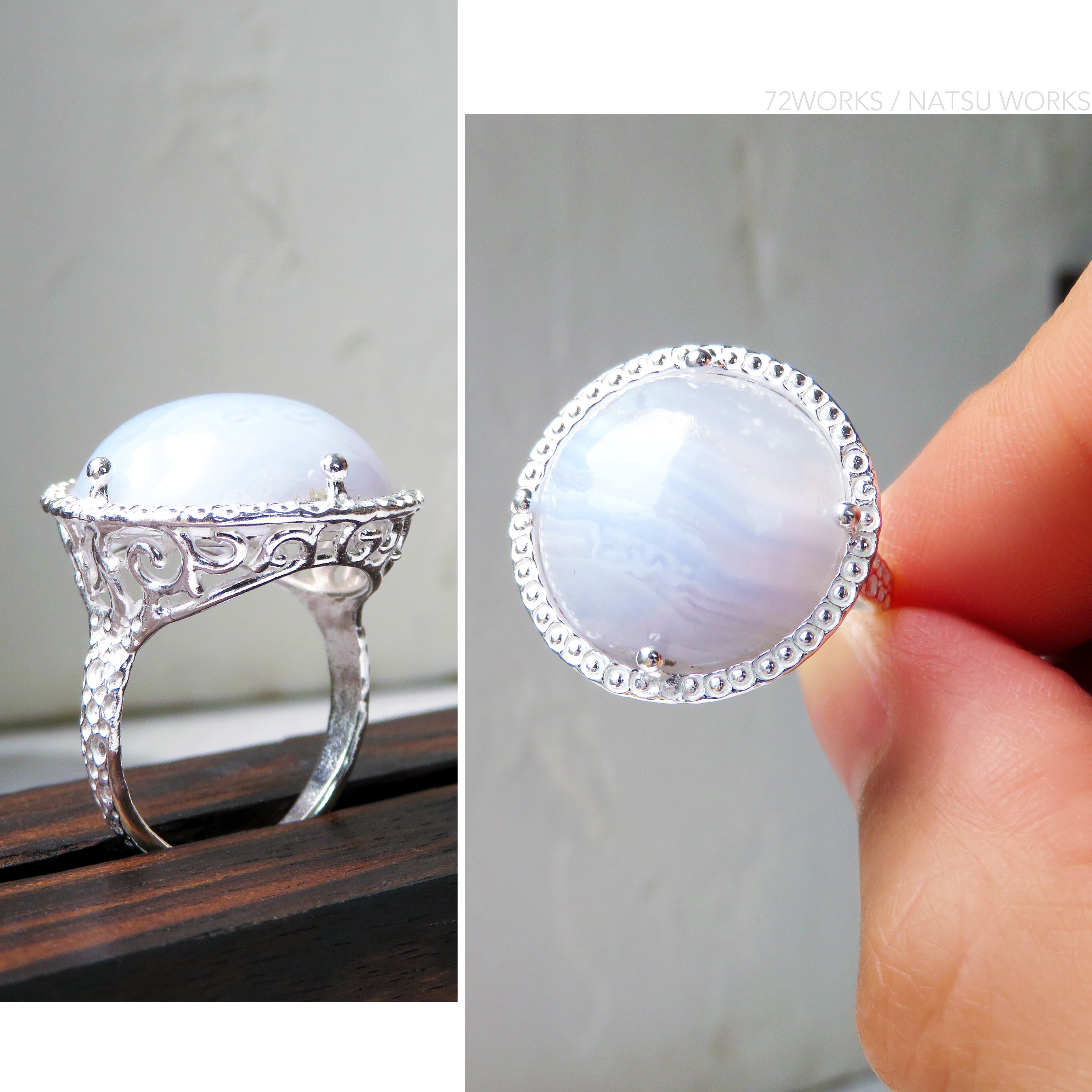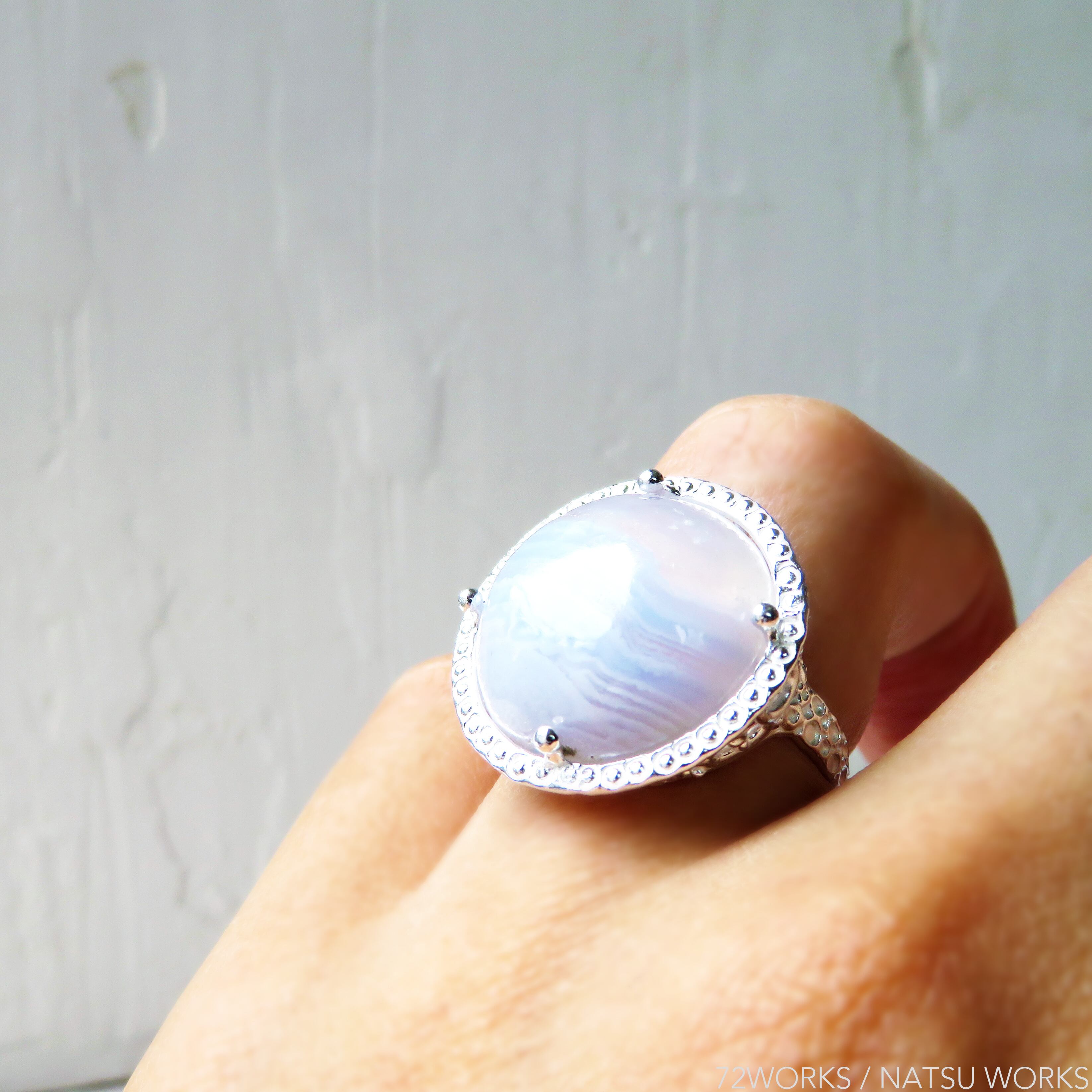 ブルーの層になったレース模様が特徴的な、アゲートを使用したリング。