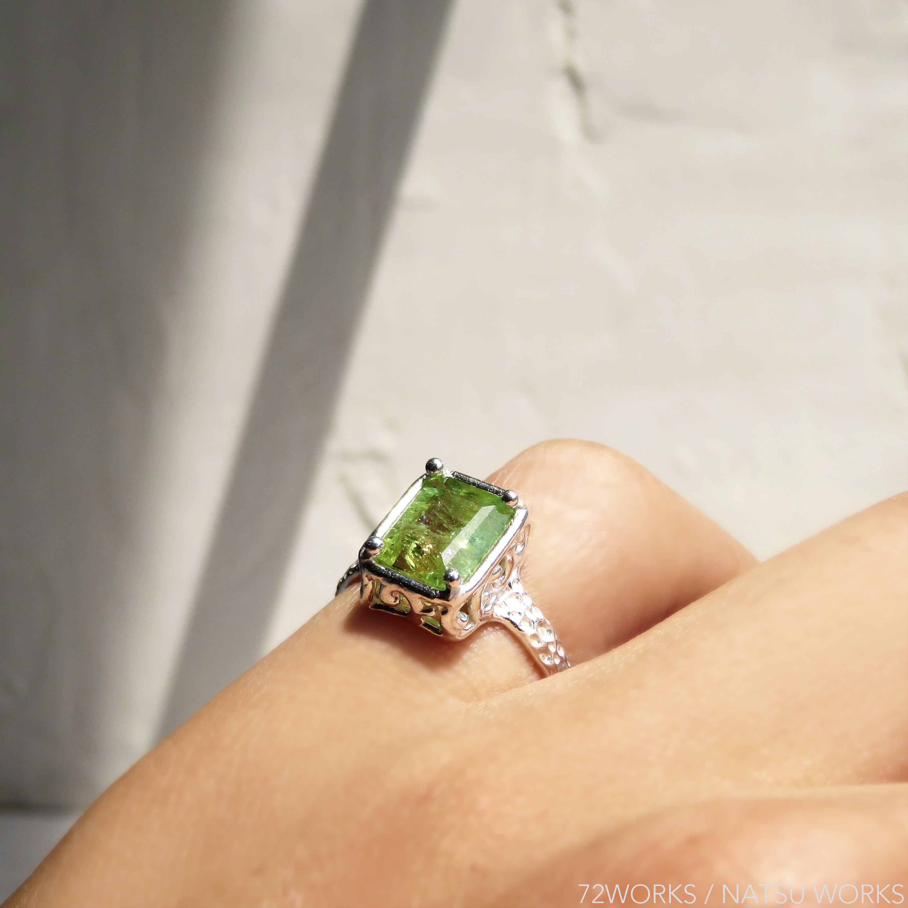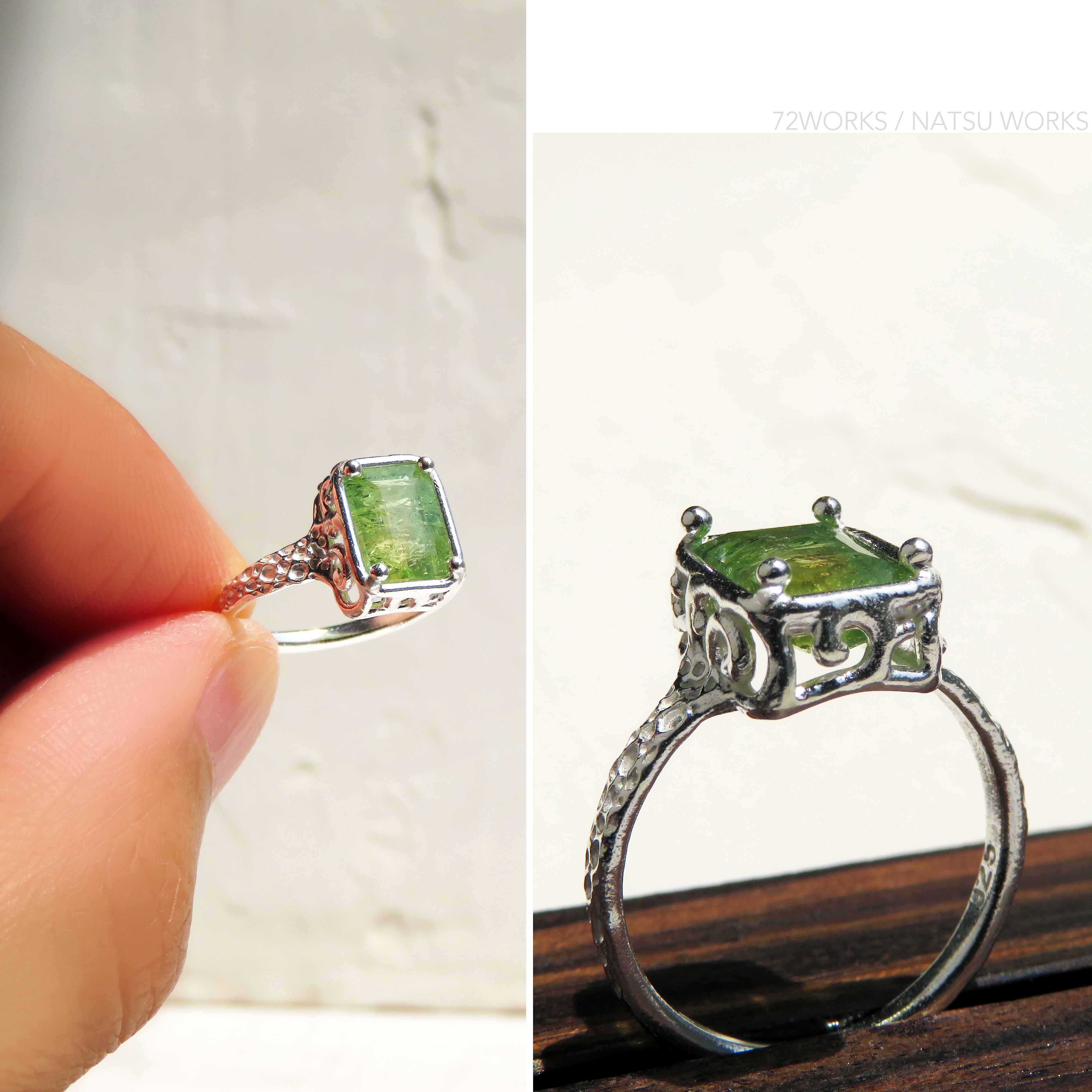 カラフルに輝くこの石を、シンプルな透かし模様にセッティングしました。