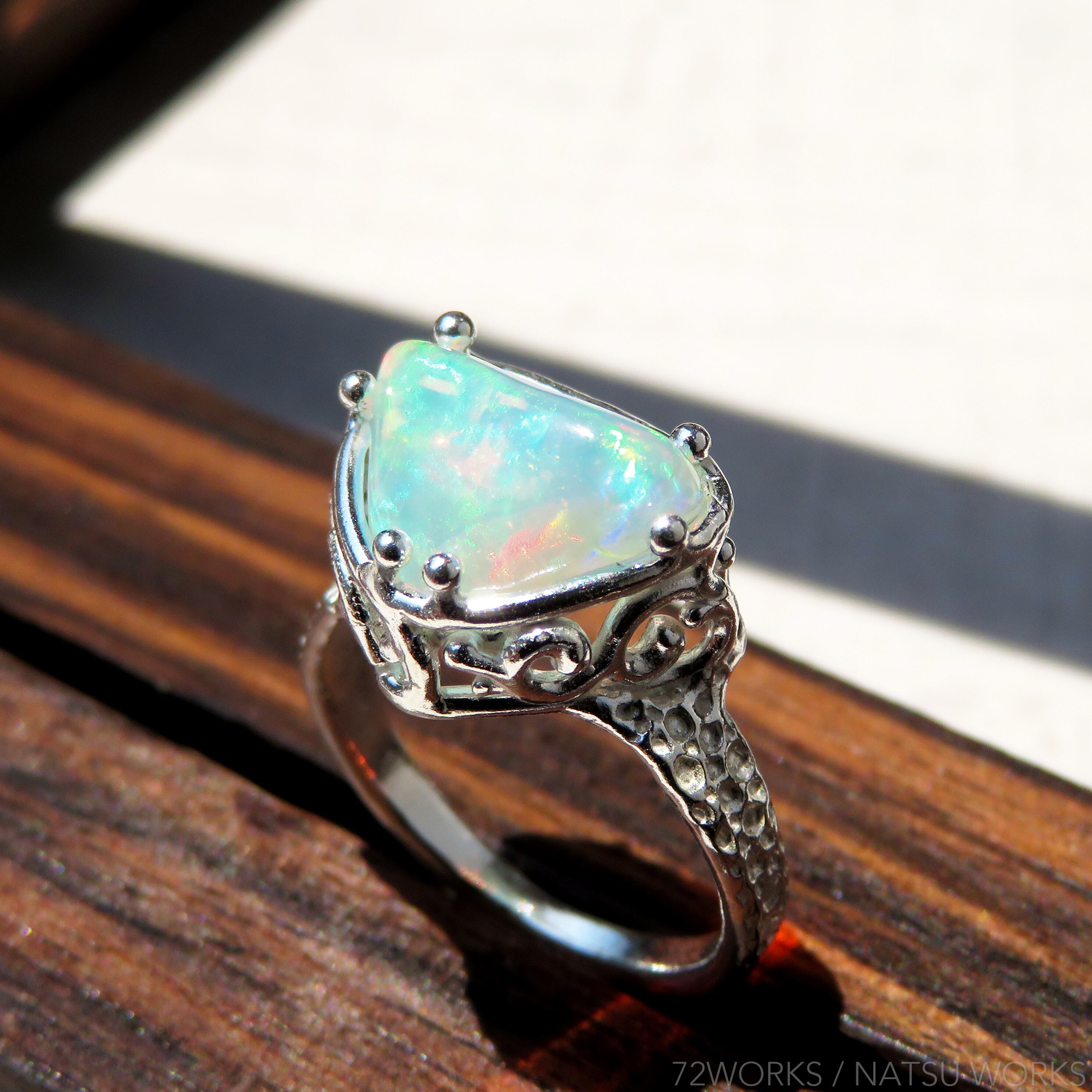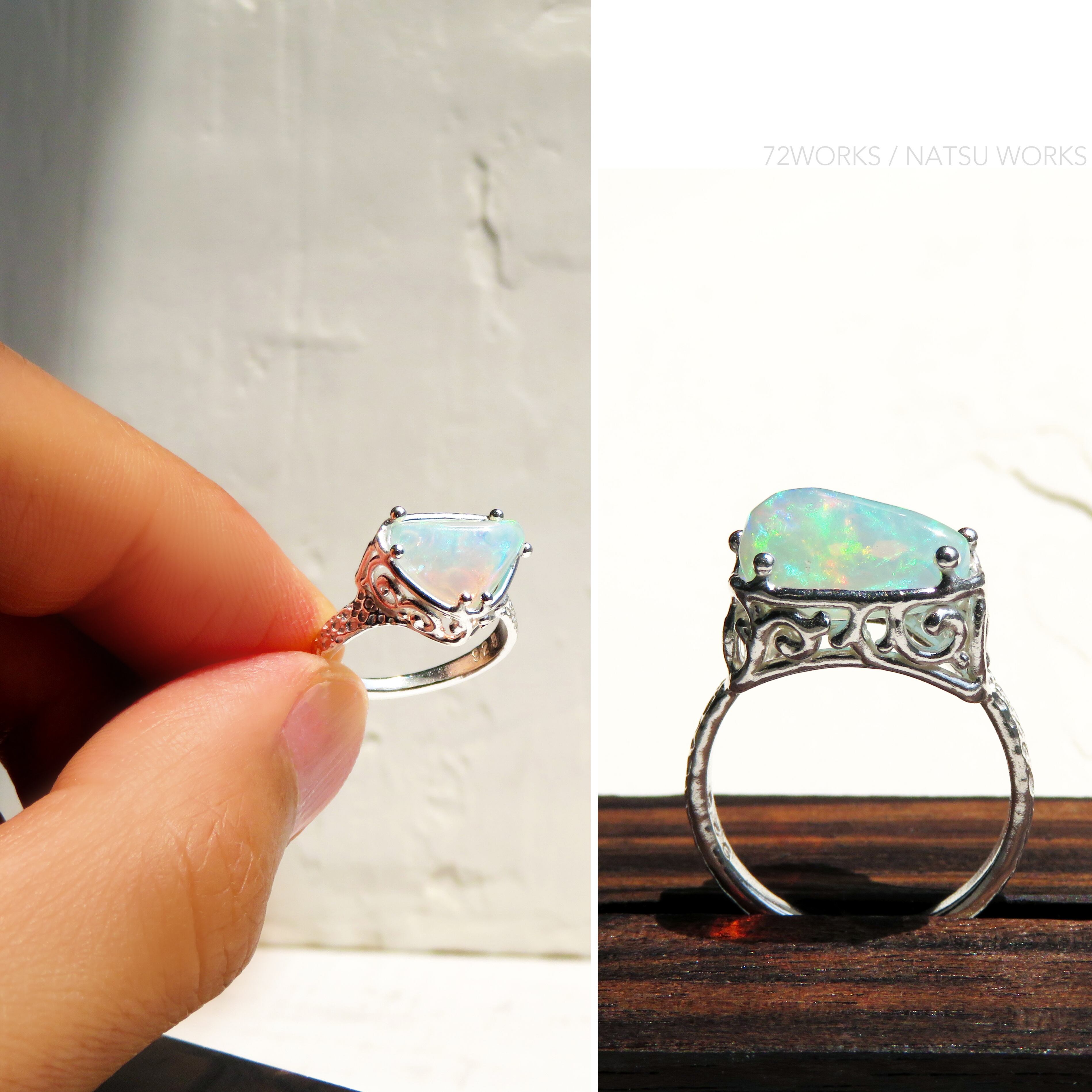 原石の魅力を残して磨かれた、エチオピアオパールを使用したリング。