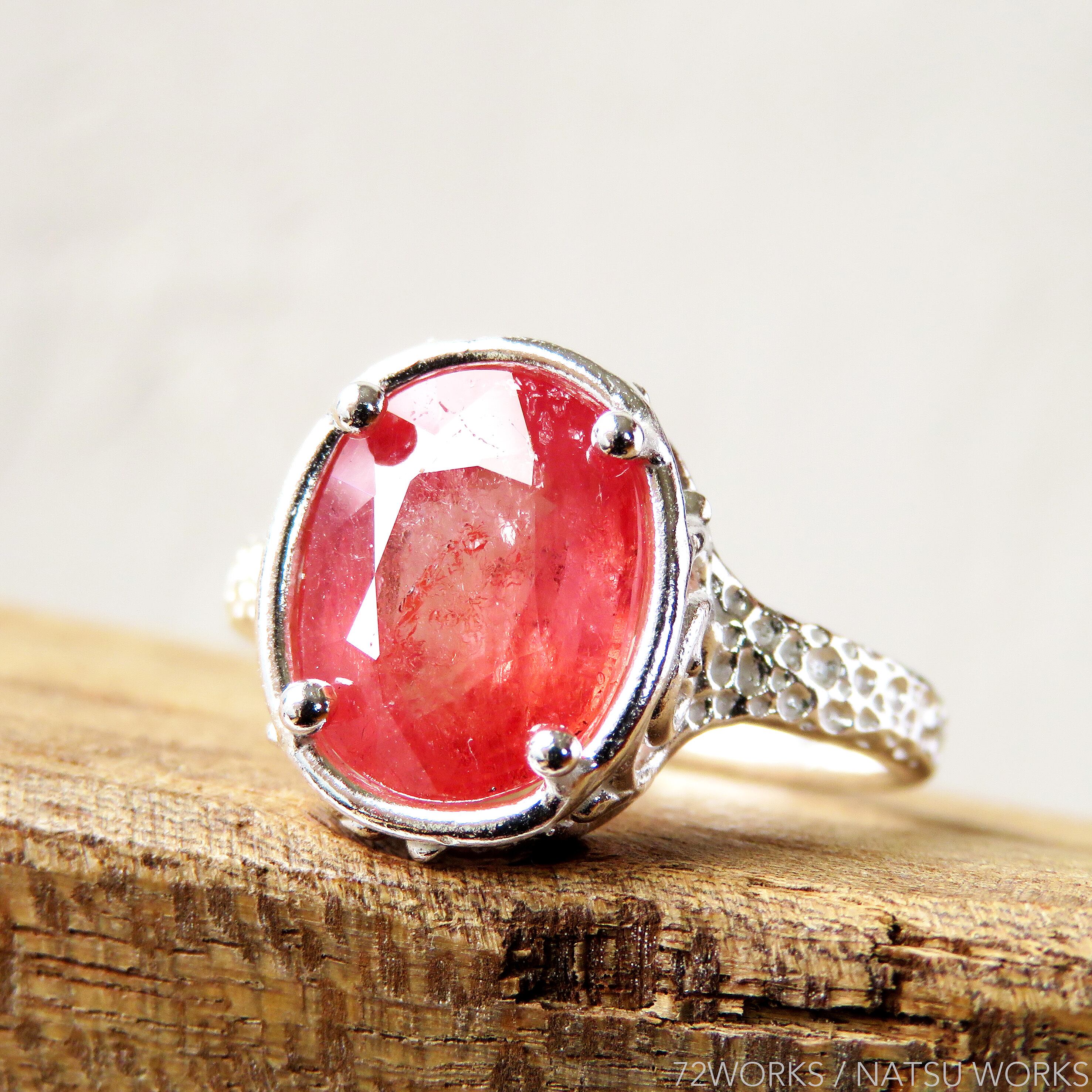 ビビットなピンクオレンジのサファイアを使用したリング。