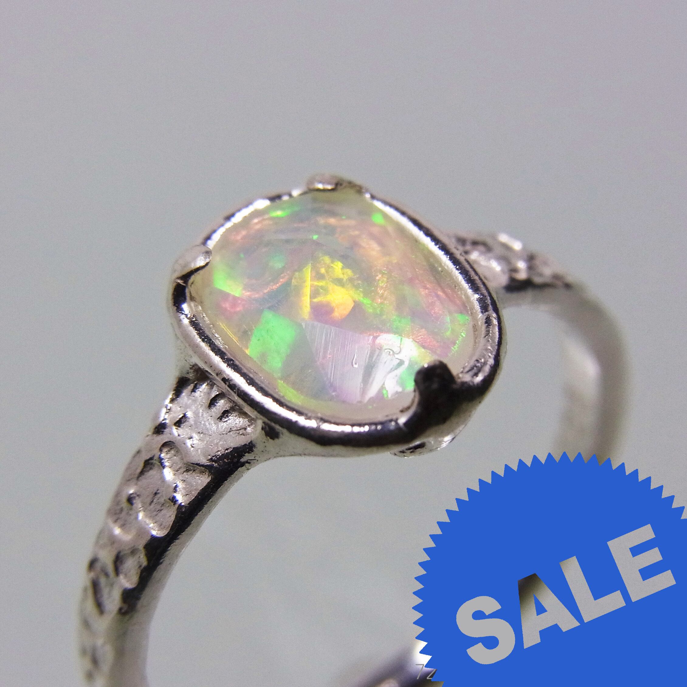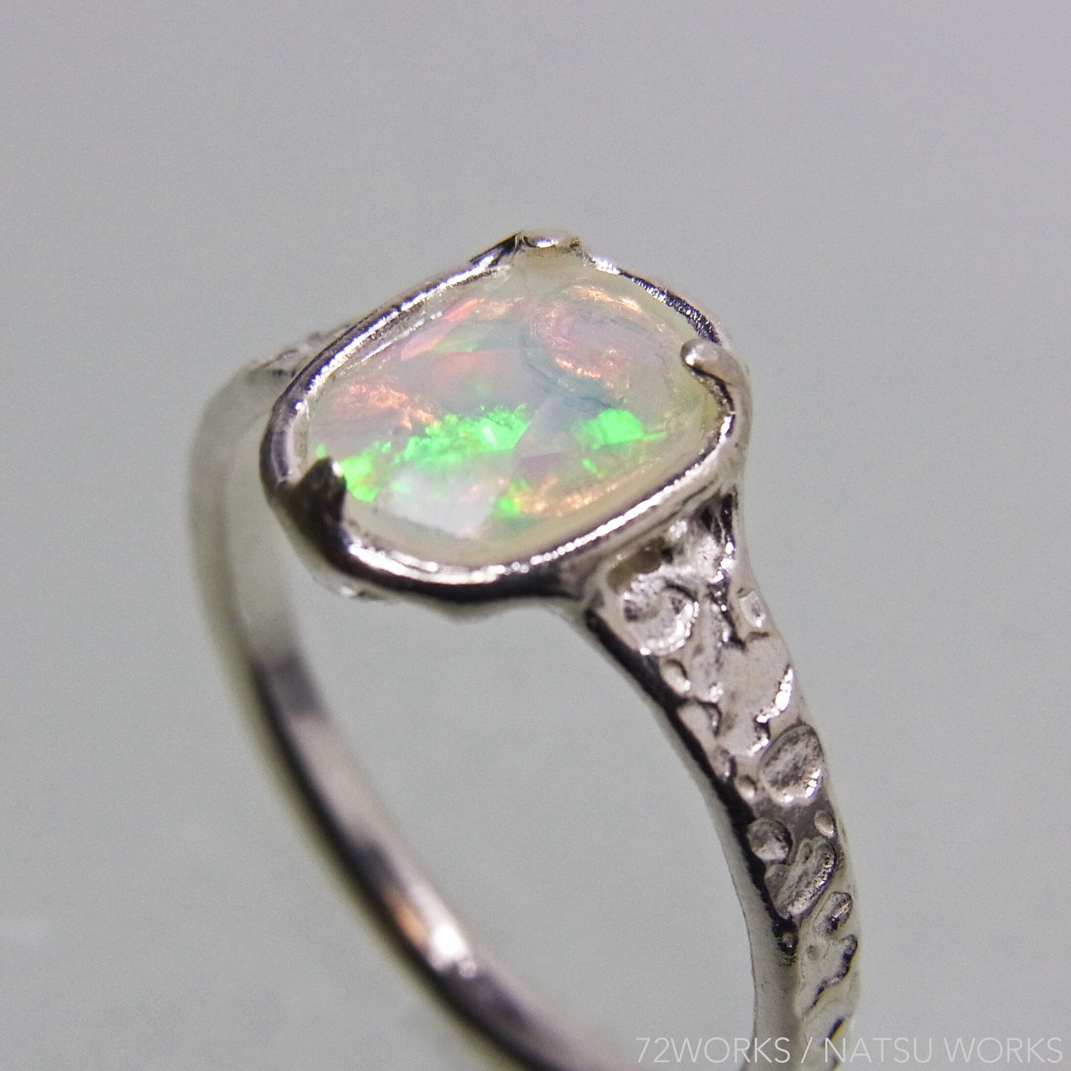 乳白色のローズカットにはカラフルな遊色が浮かびます。