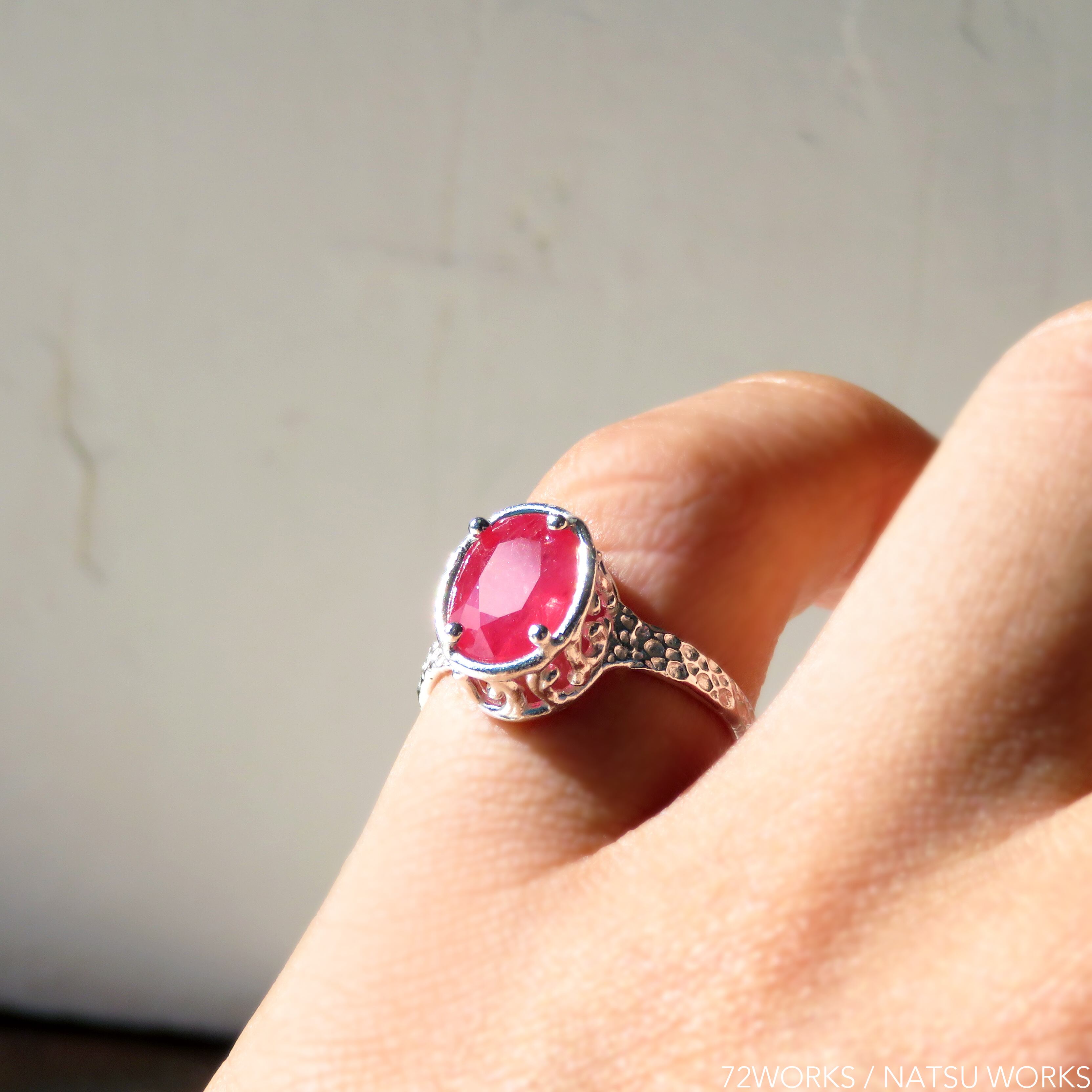 鮮やかなカラーの石を、透かし模様の台座にセッティングしました。