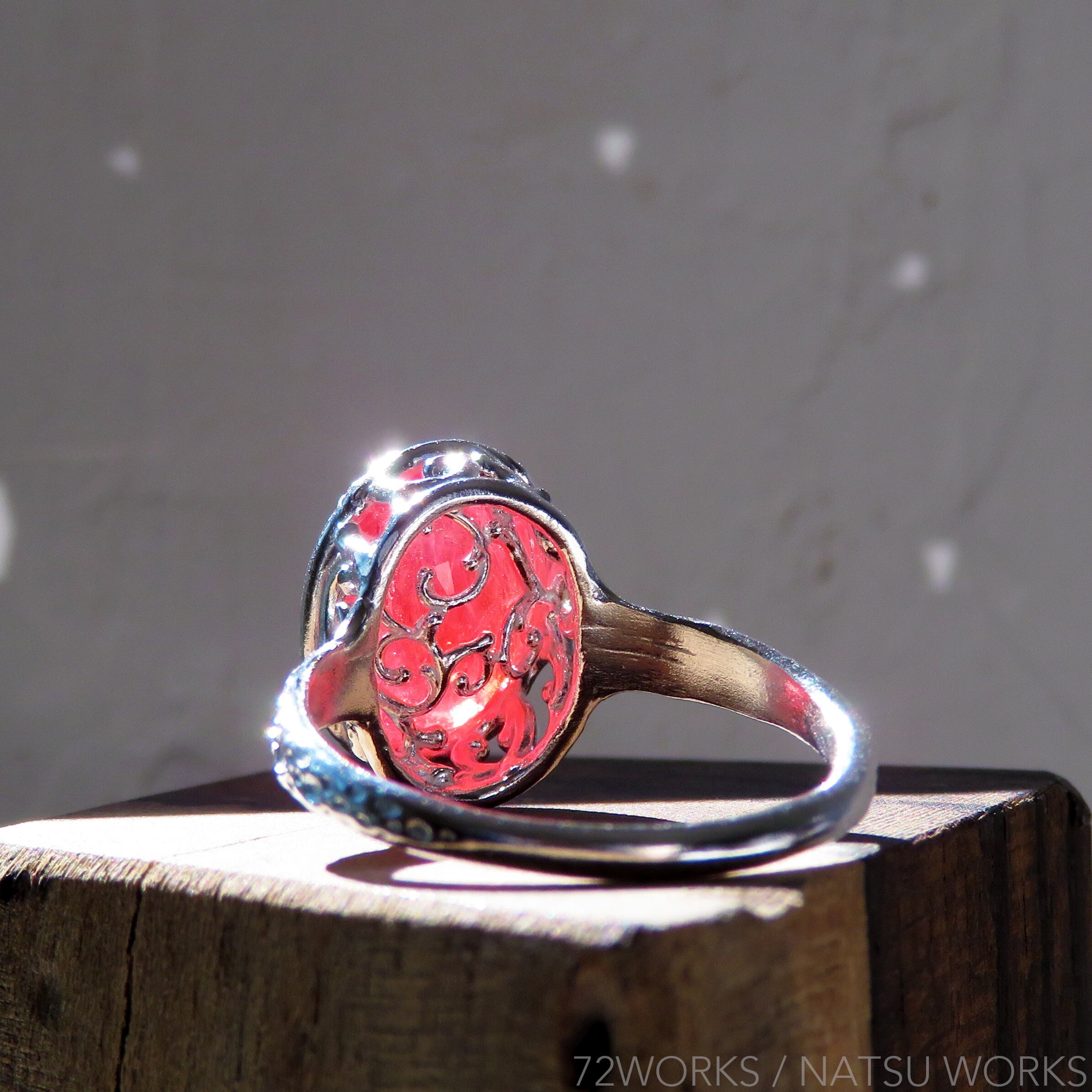 鮮やかなカラーの石を、透かし模様の台座にセッティングしました。