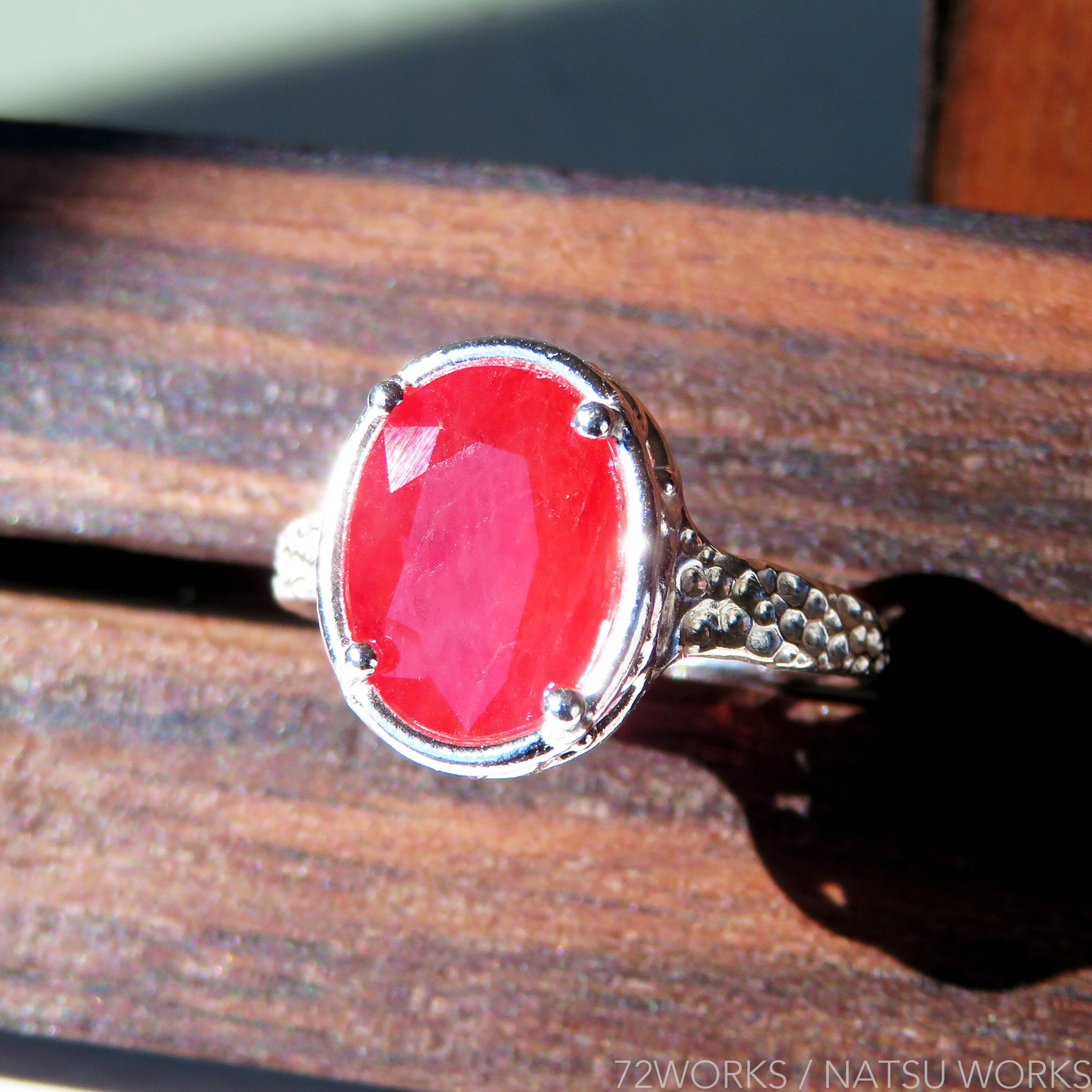 ビビットなピンクオレンジのサファイアを使用したリング。