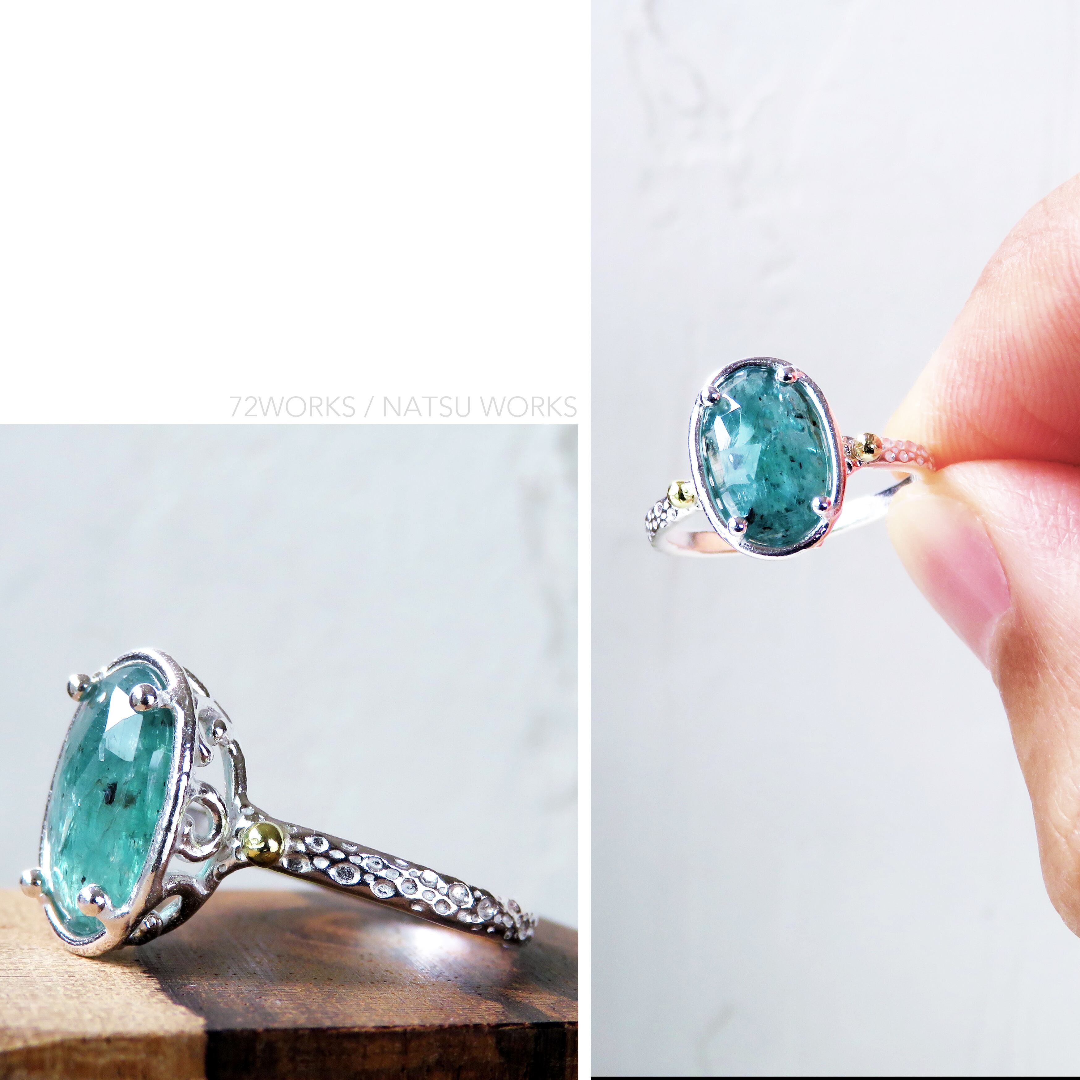 ローズカットのグリーンモスカイヤナイトを使用したリング。