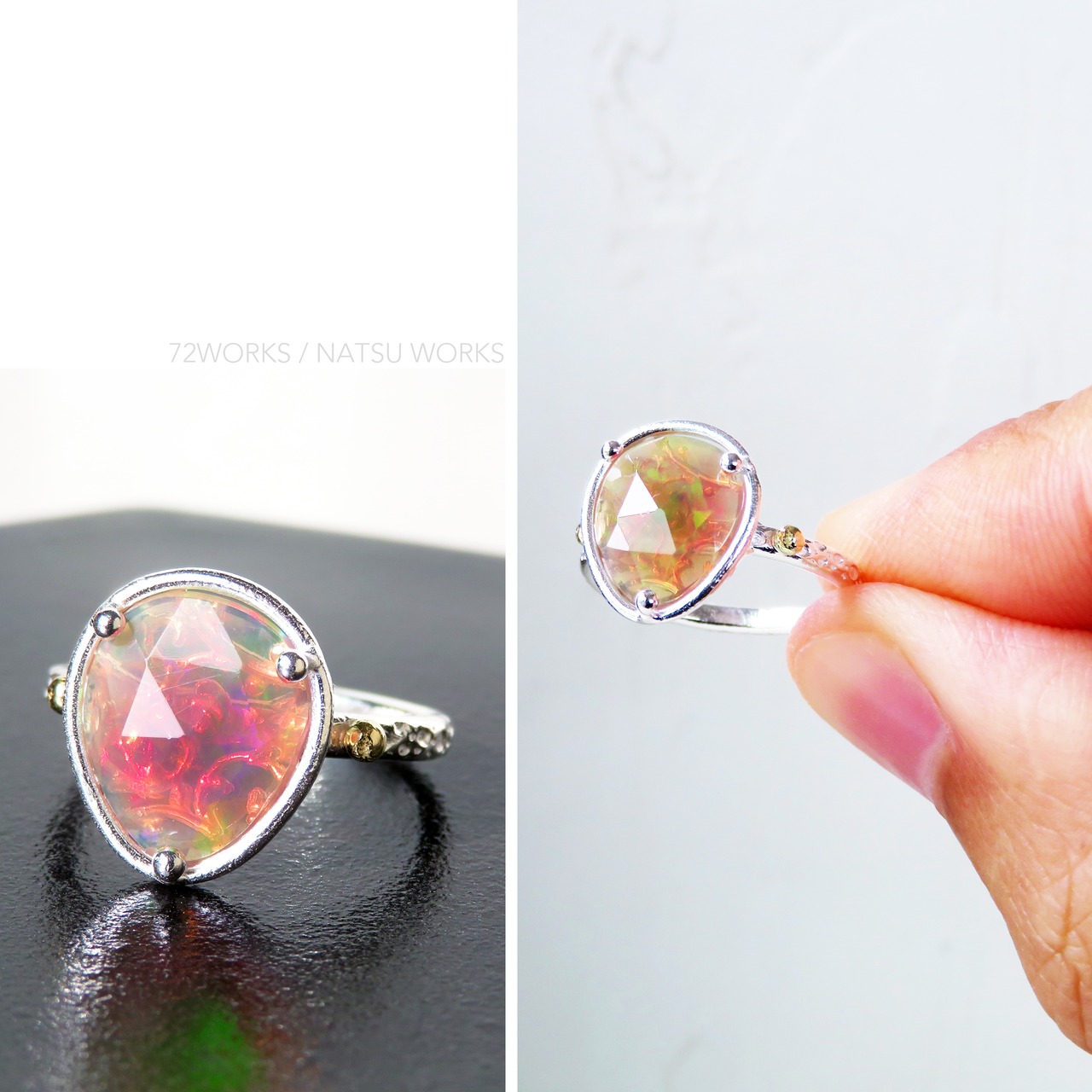ローズカットが施されたエチオピアオパールを使用したリング。