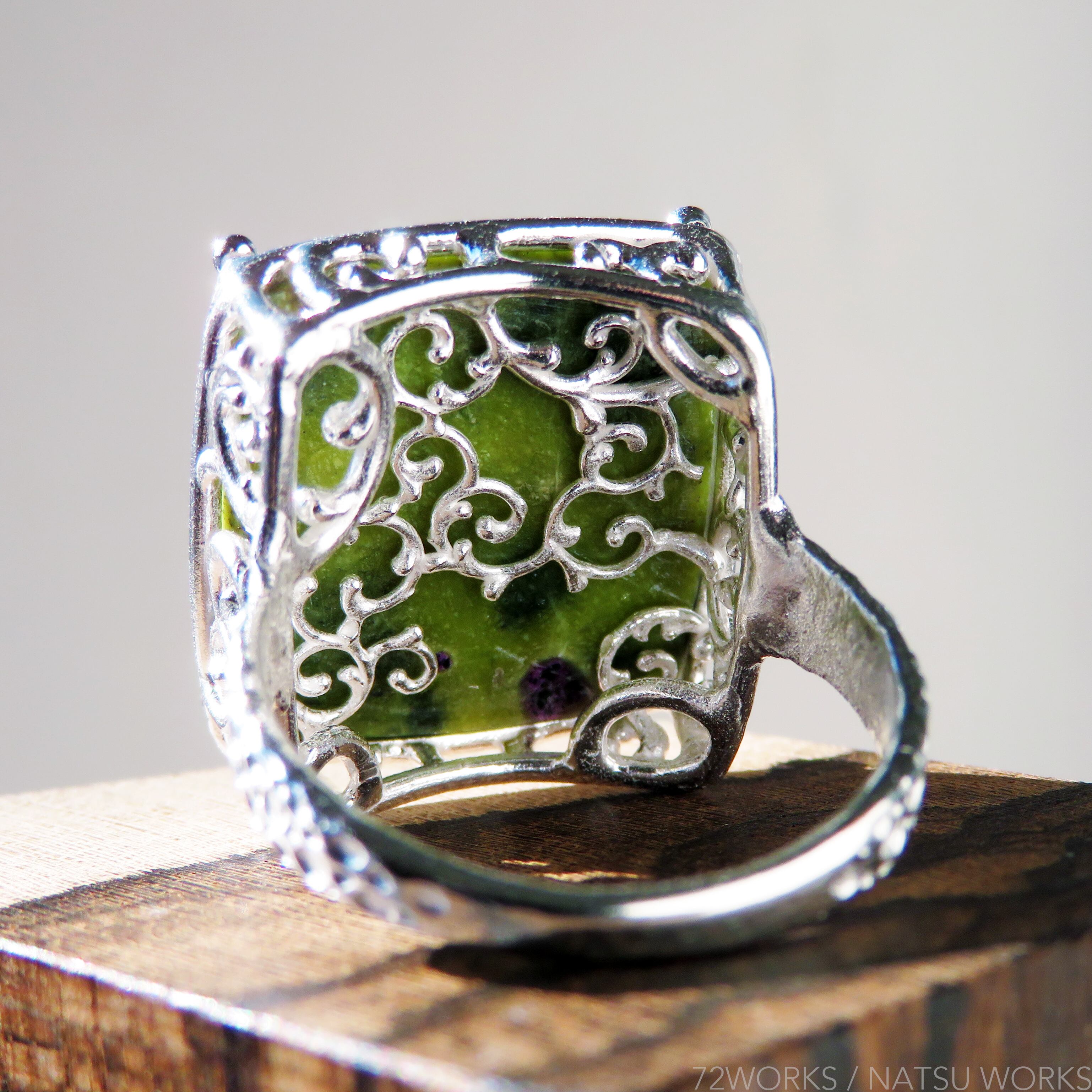 独特の色彩が魅力的なこの石を、透かし模様の台座にセッティングしました。