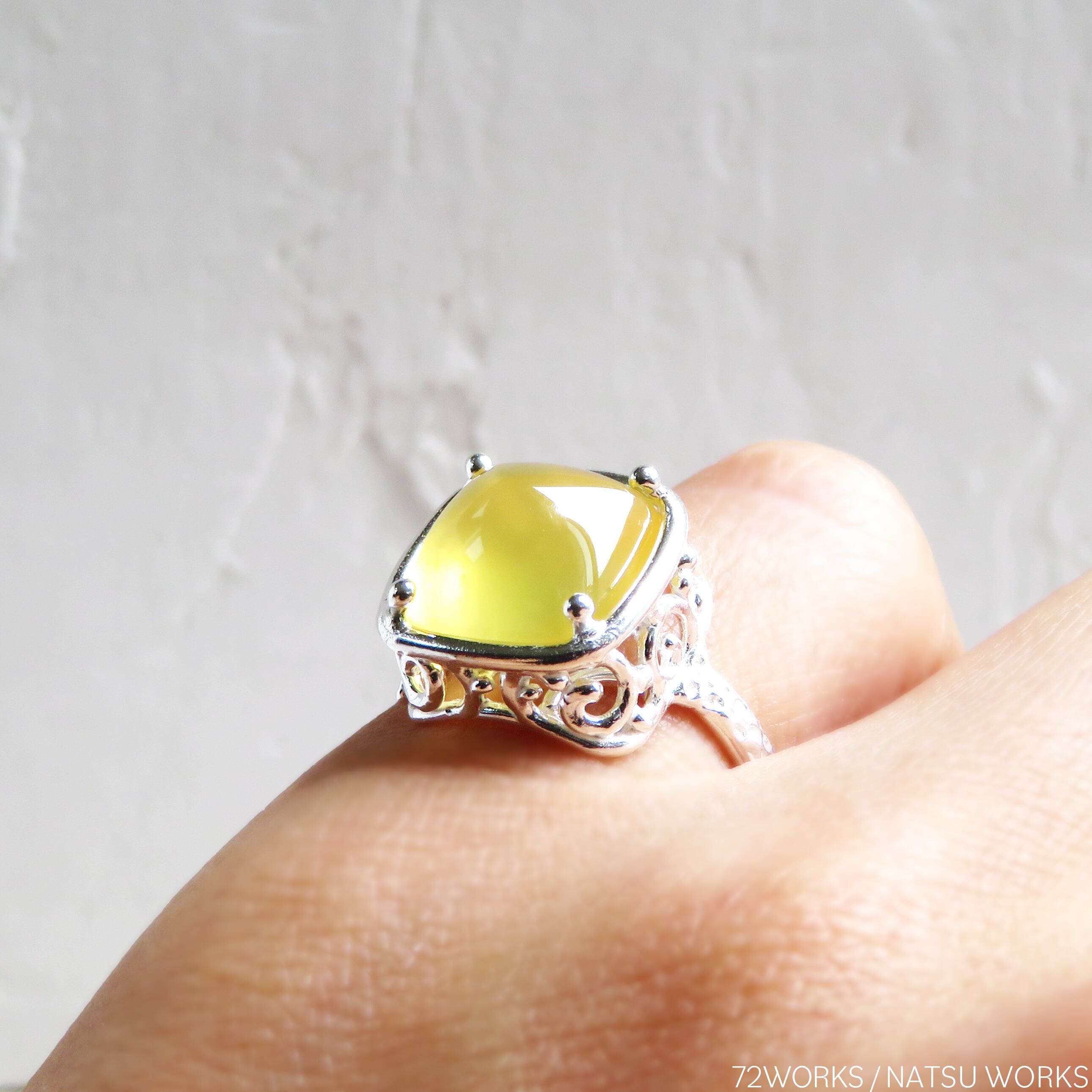 独特の色彩がシュガーローフカットに映える石を、透かし模様の台座にセッティングしました。