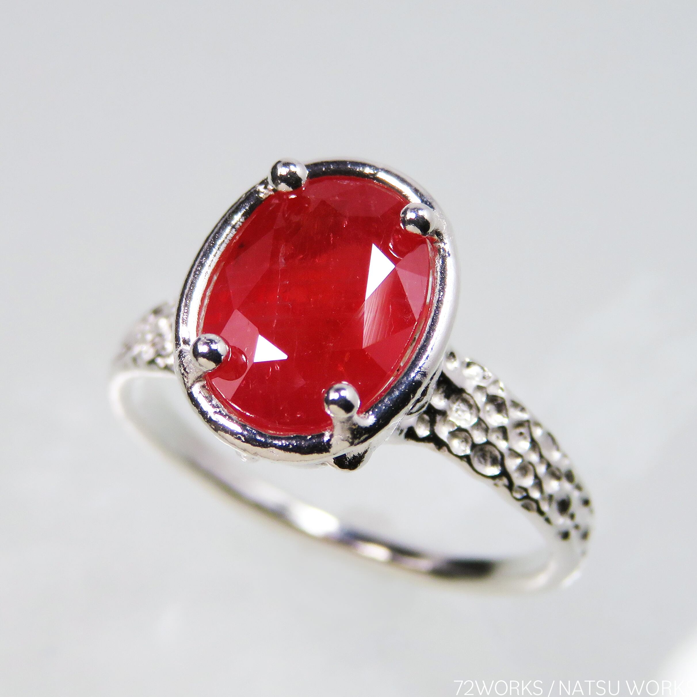 ビビットカラーのサファイアを、透かし模様の台座にセットしました。