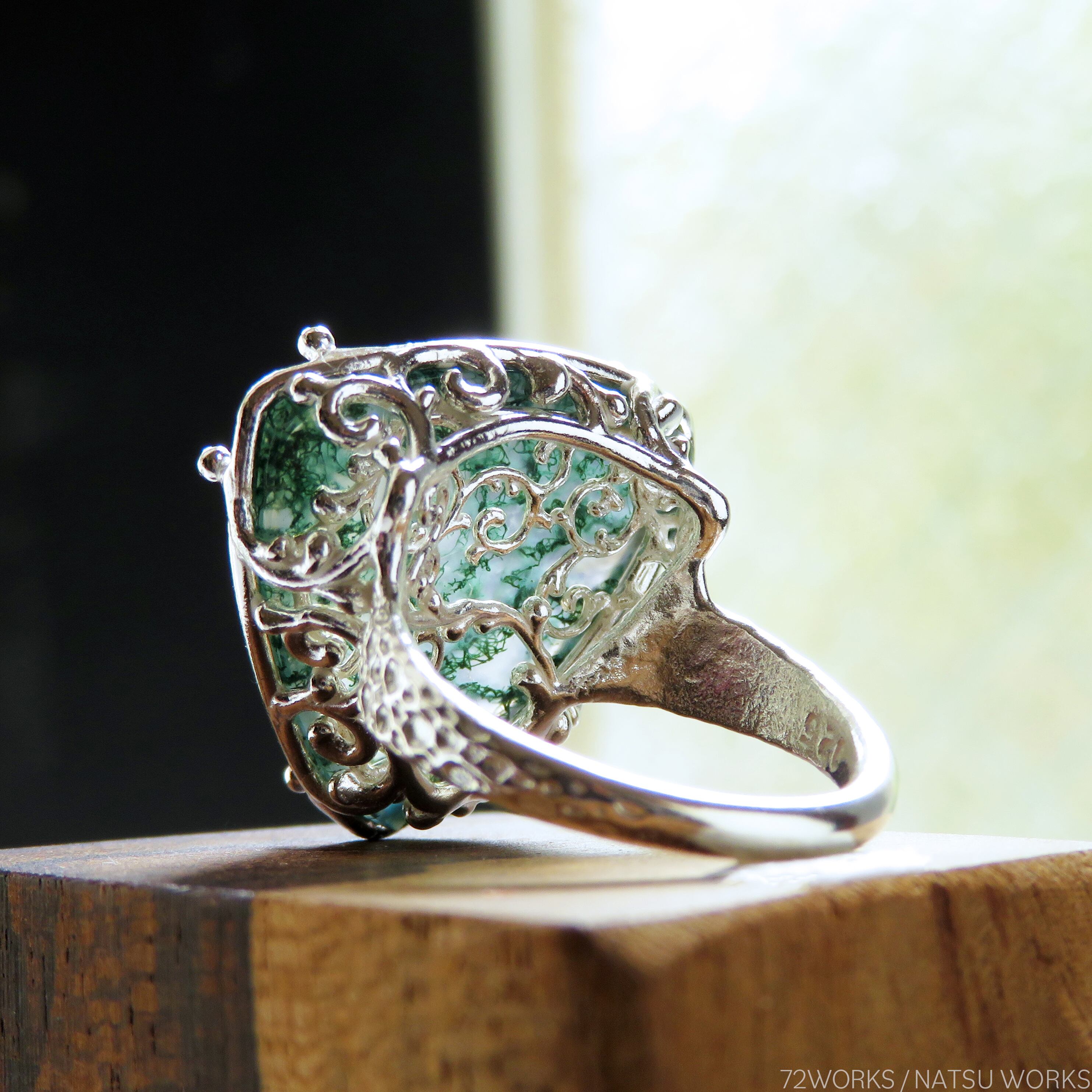 高い透明度に内包物が映えるアゲートを、透かし模様の台座にセッティングしました。