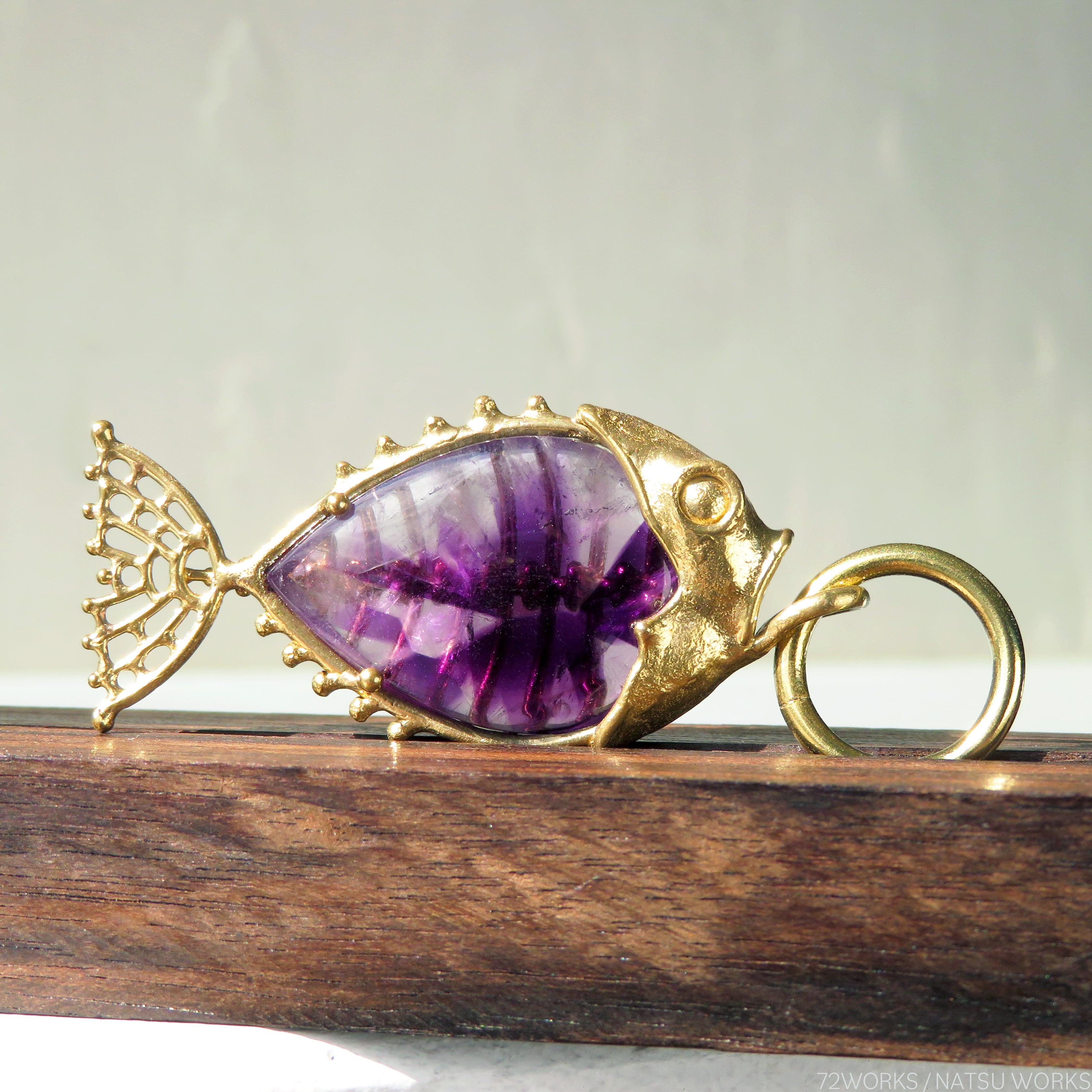 トラピッチェアメジスト フィッシュ チャーム / Trapiche Amethyst Fish charms
