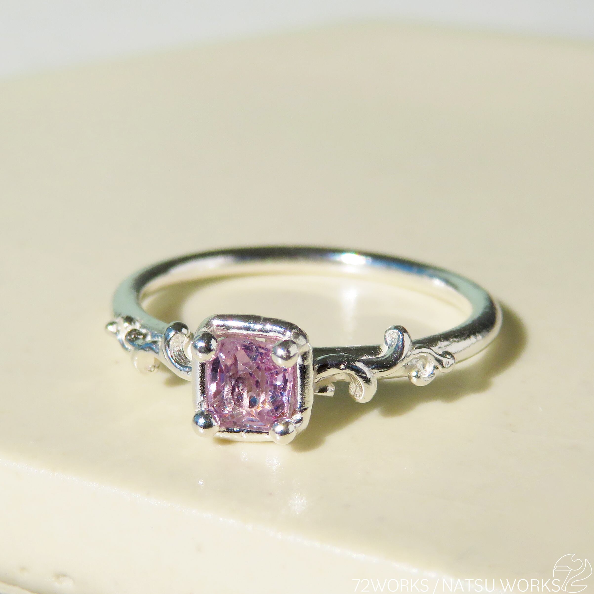 小さくカラフルなスピネルを、唐草の細身のアームにセットしました。