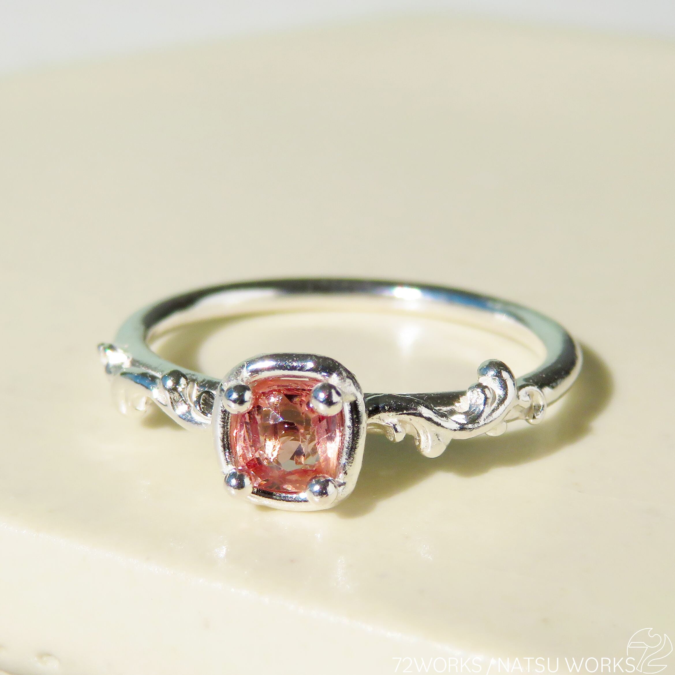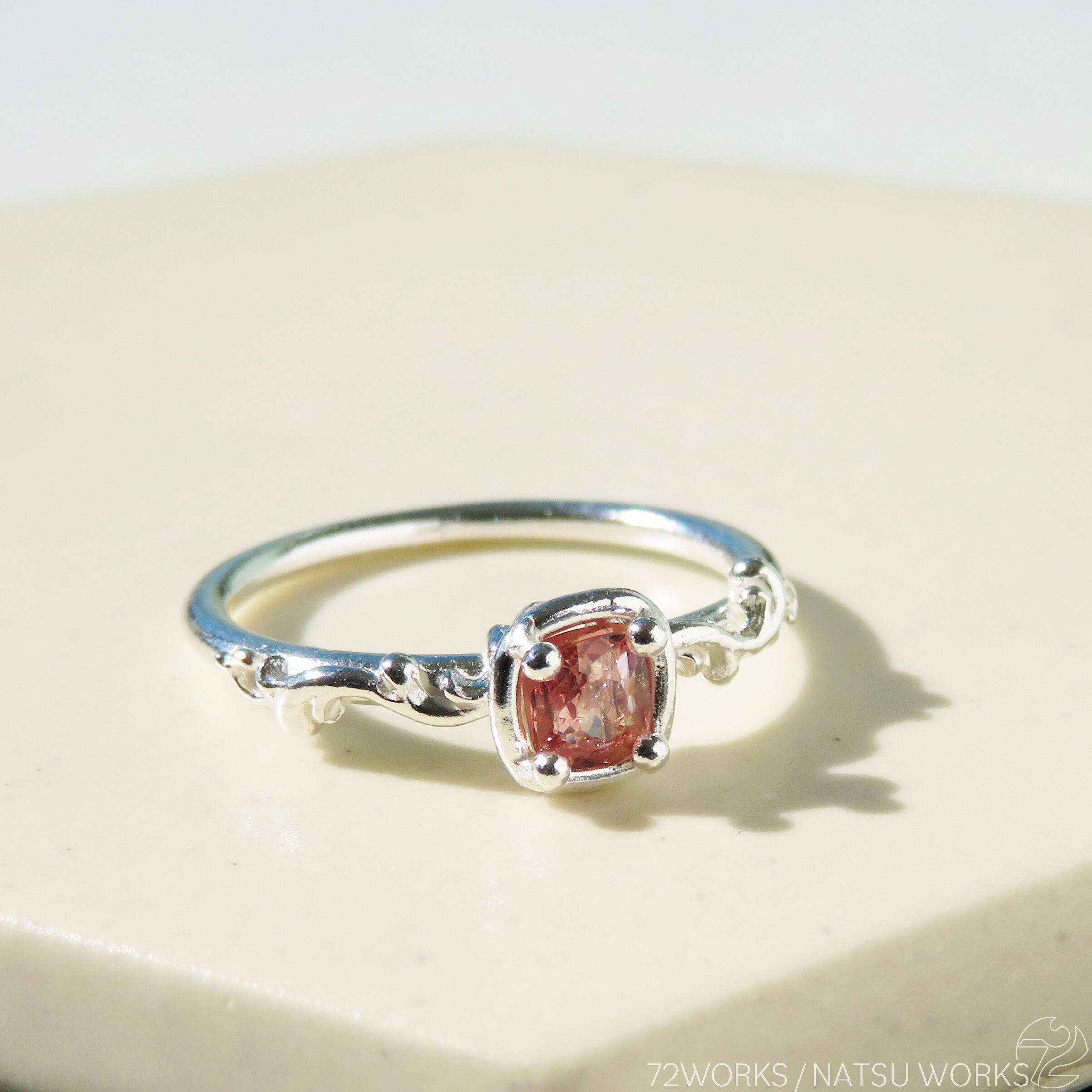 小さくカラフルなスピネルを、唐草の細身のアームにセットしました。