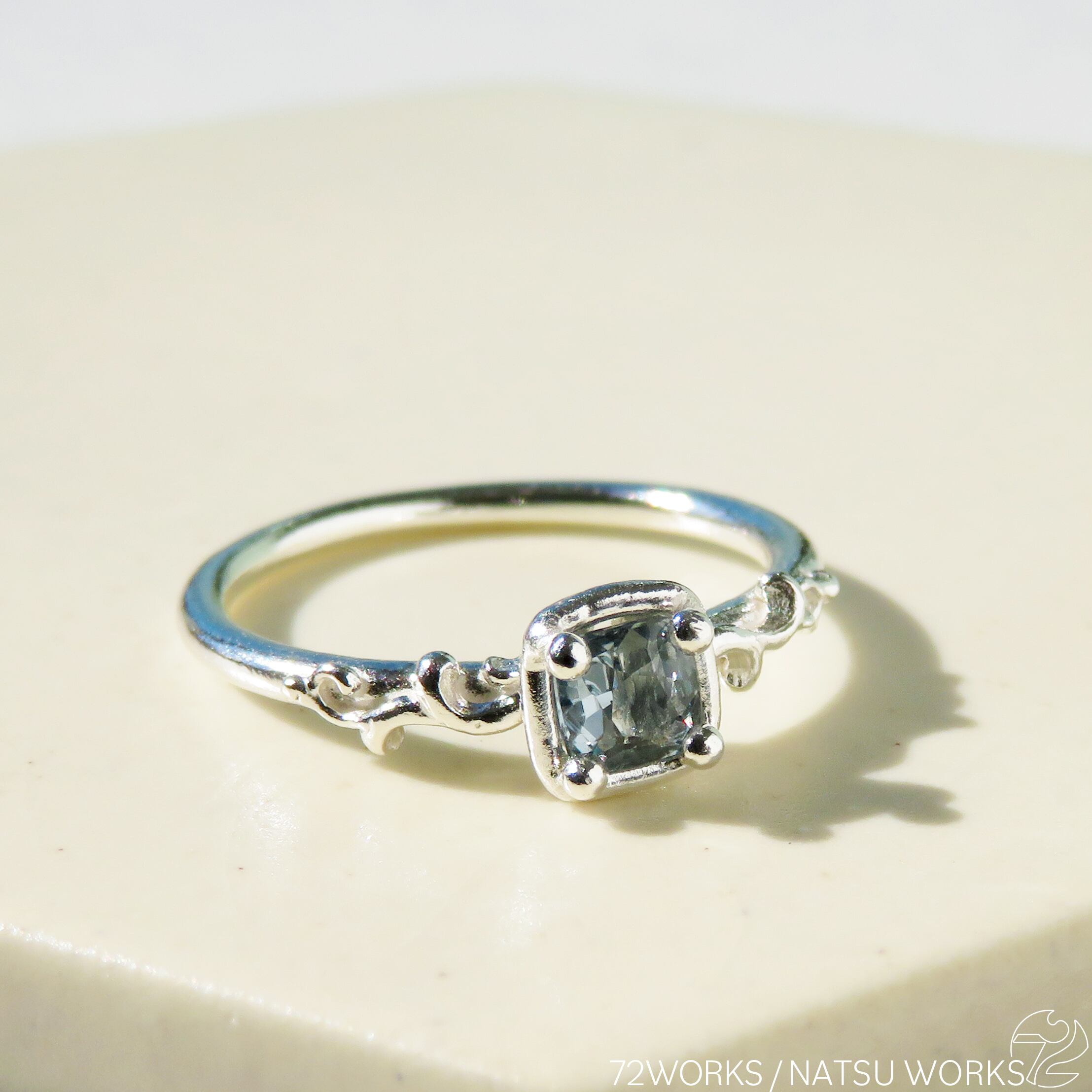 小さくカラフルなスピネルを、唐草の細身のアームにセットしました。