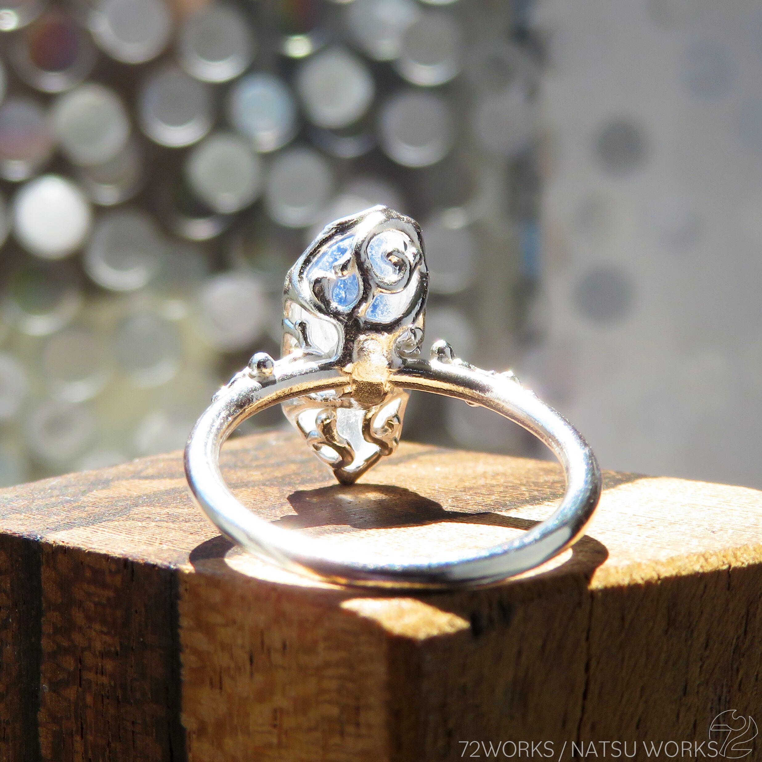 爽やかなブルーの原石を、唐草と透かし模様の細身のリングにセットしました。