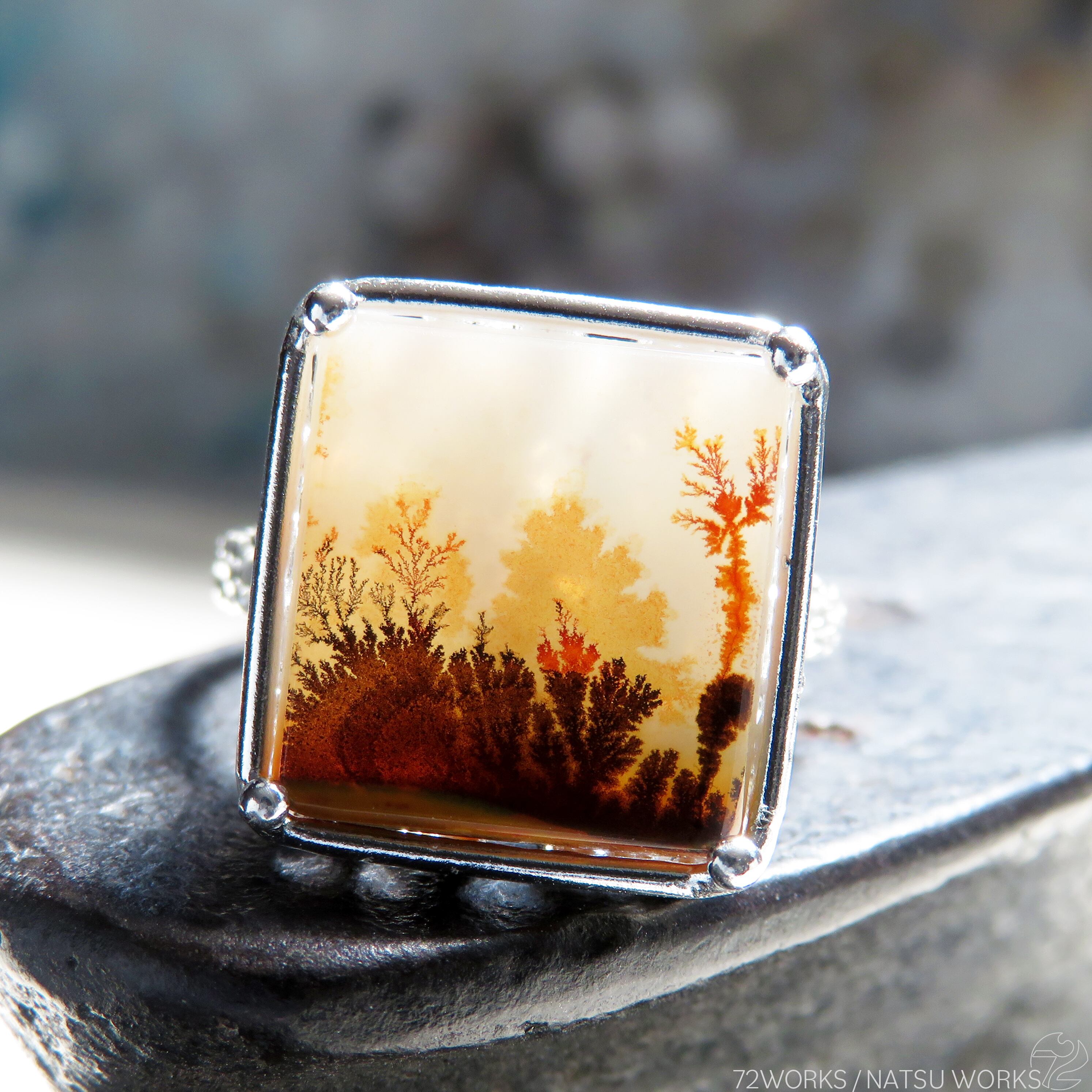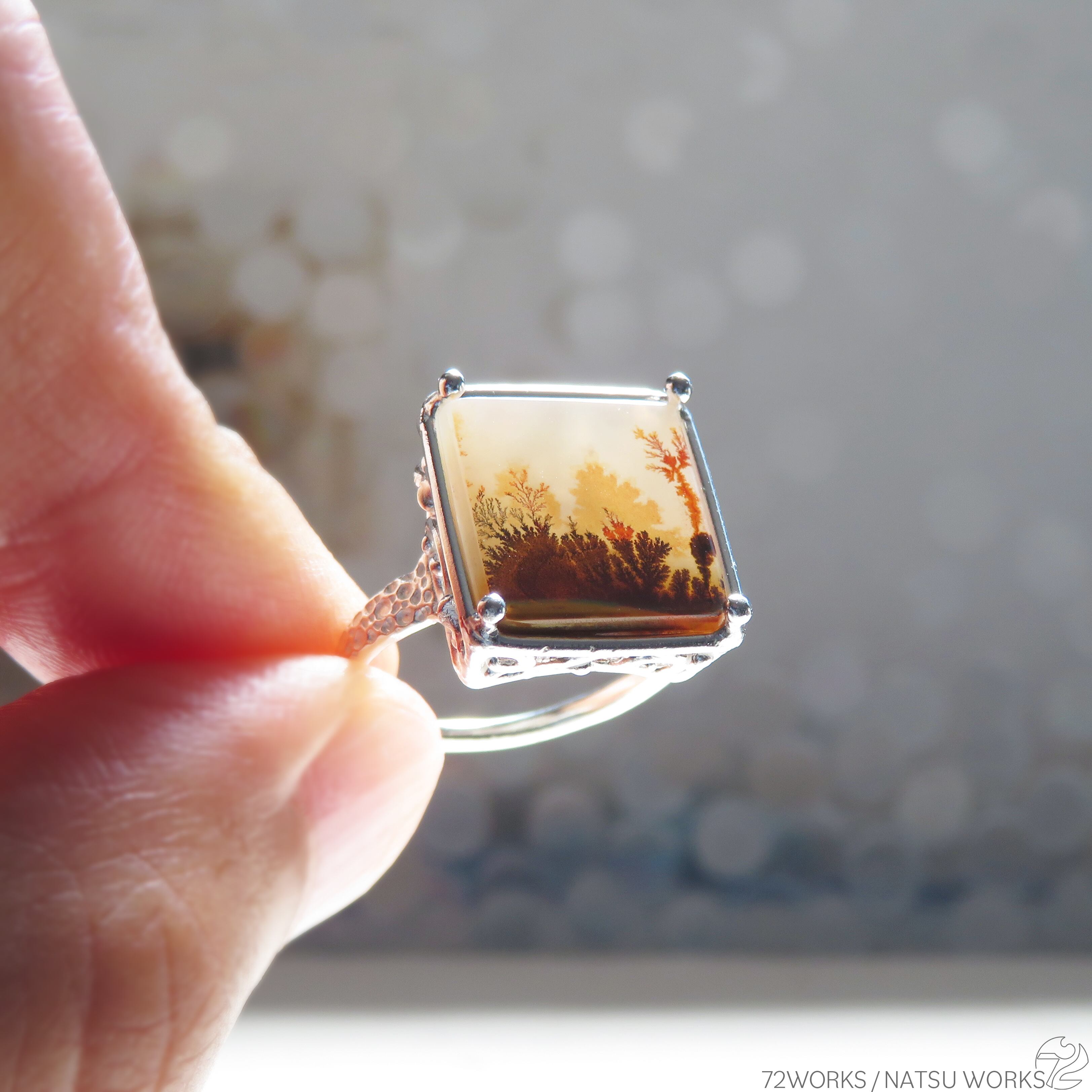 デンドリティックアゲートを使用したリング。