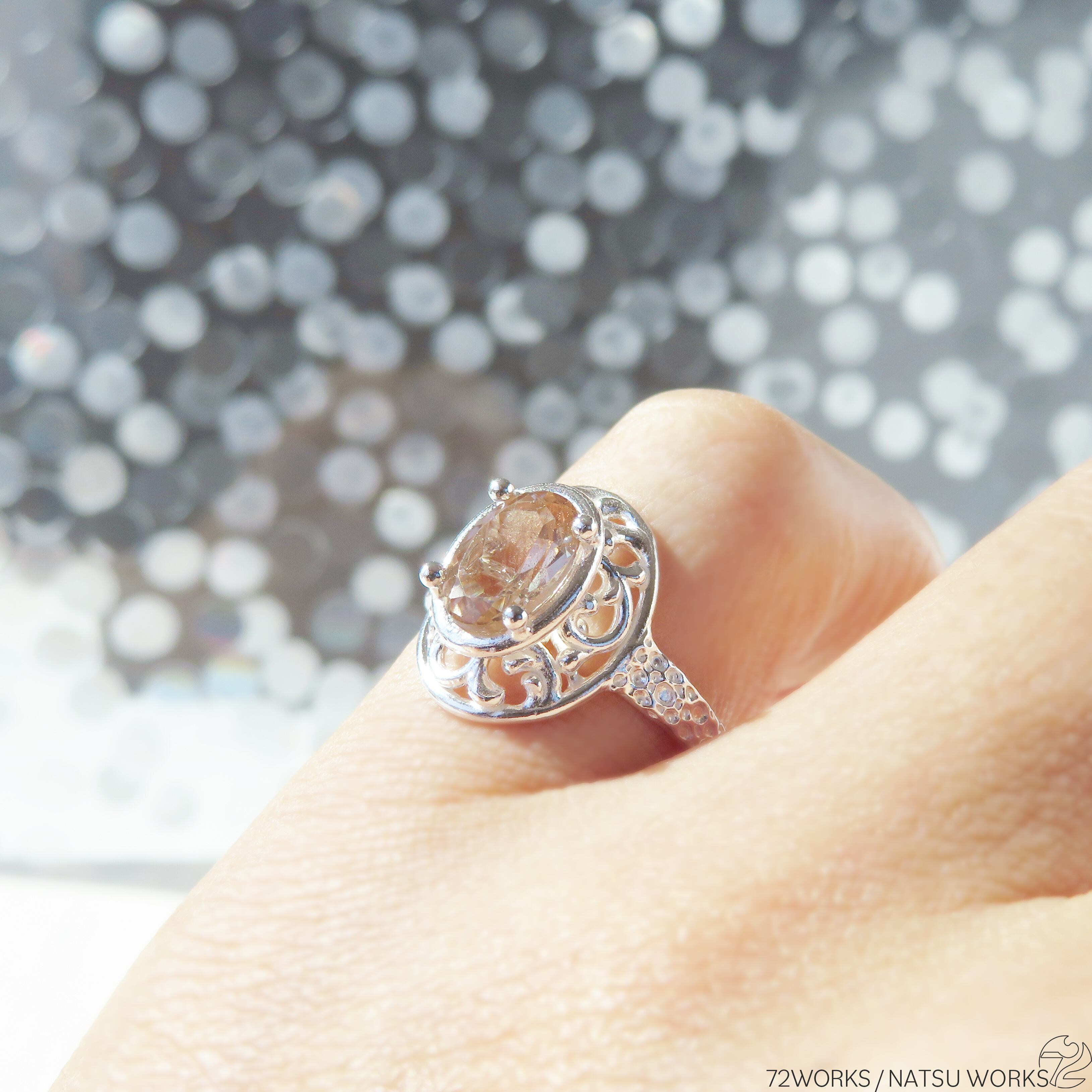 オレゴンサンストーンを使用したリング。