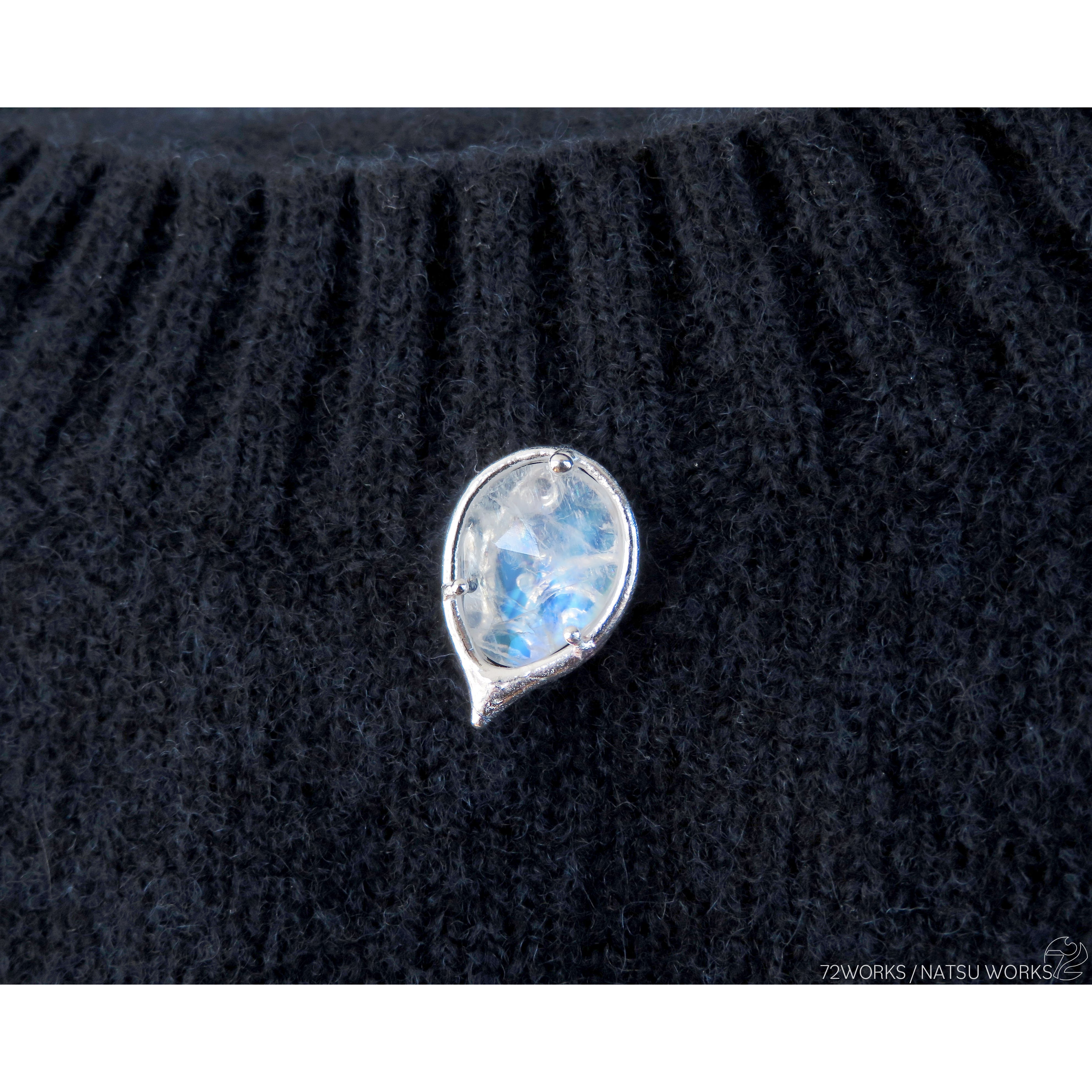 淡く輝くホワイトラブラドライト(レインボームーンストーン)のピンブローチ。